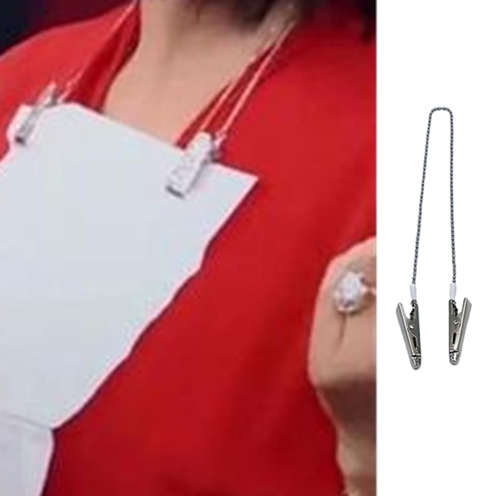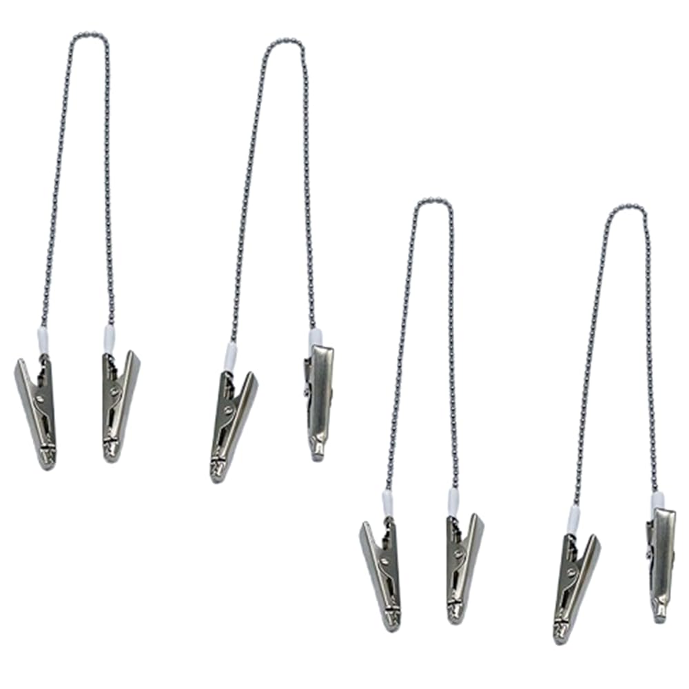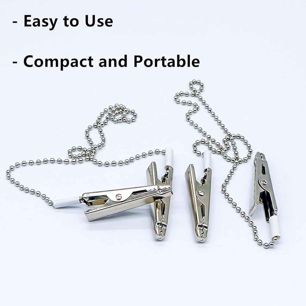 Our dental bib clips are crafted from strong, wear-resistant iron, ensuring lightweight yet long-lasting performance. Perfect for keeping your hands free during dental visits or running events, these clips securely hold bibs, napkins, or towels around your neck. Easy to use—simply open the clips, attach them to both ends of the bib, and hang the chain around your neck. Each set includes 4 pcs with a 13 inches/ 33cm chain and 2.1-inch clips, designed for easy folding and portability. These versatile clips are ideal for dental clinics, home use, and hair salons, providing secure holding for napkins, towels, or bibs.