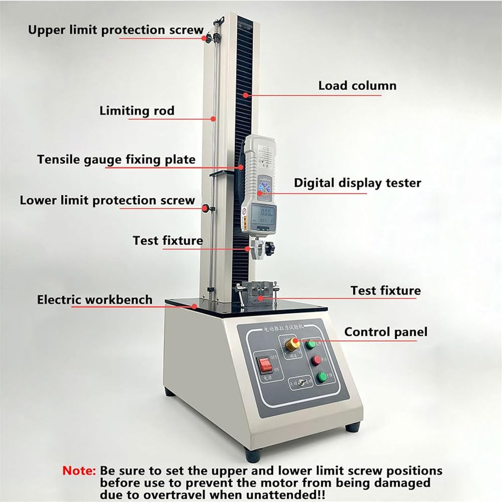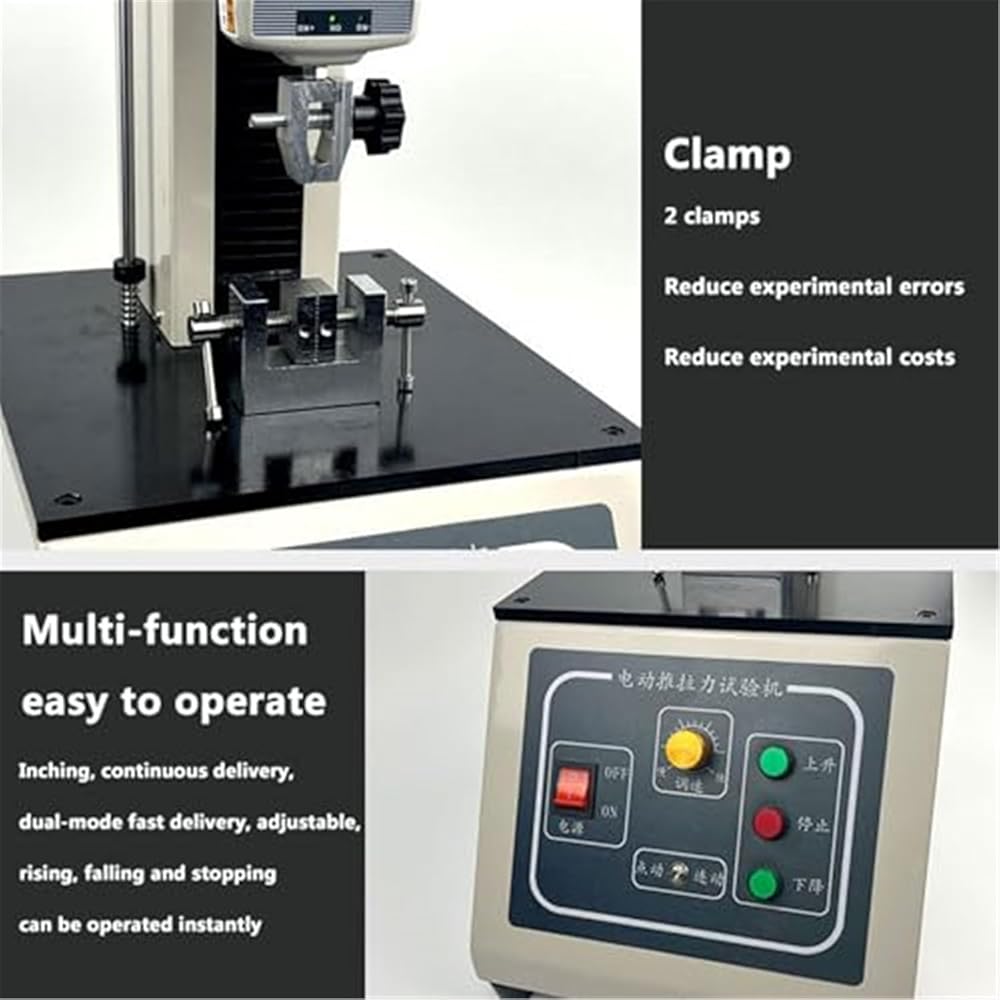 Experience precision testing with our Electric Tension Testing Machine, expertly designed to measure tensile, compressive, tear, and peel strengths. This reliable equipment is essential for various industries, including textiles, plastics, and packaging, ensuring you meet quality standards with ease. **Product Name:** Electric Tension Testing Machine **Model:** e + Digital Display **Load Capacity:** Options available: 10N, 20N, 50N, 100N, 200N, 500N, 1000N, 2000N **Measurement Error:** ±0.001 **Travel Length:** 450mm **Applications:** Ideal for testing tensile, compressive, tear, and peel strengths in materials. **Dimensions:** 380mm x 250mm x 870mm Included with the machine are two clamps for secure material testing, five interchangeable heads for different applications, one extension rod to enhance functionality, and a complete set of mounting screws for easy assembly. Whether you are conducting quality assurance tests in a lab or performing on-site evaluations, this testing machine offers versatility and accuracy. With its user-friendly digital display, you can effortlessly monitor your measurements, making it a valuable tool for engineers and quality control professionals alike. Investing in our Electric Tension Testing Machine means equipping your facility with a high-performance solution that enhances your testing capabilities and helps you maintain the integrity of your products. Elevate your testing processes and ensure your materials meet industry standards with our state-of-the-art machine.