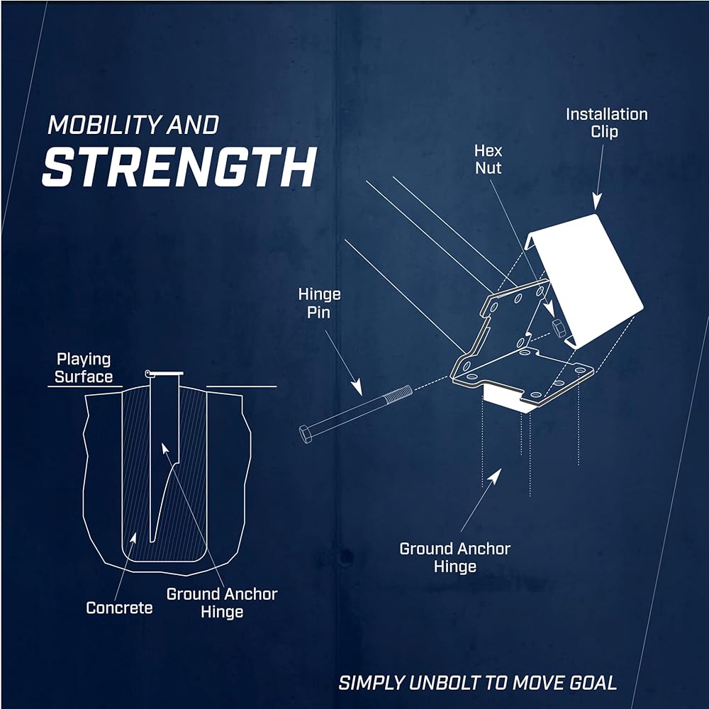 EASY INSTALLATION – Ground Anchor Hinge System is an exclusive Goalsetter design that enables easy installation of the goal system without the use of scaffold or ladders