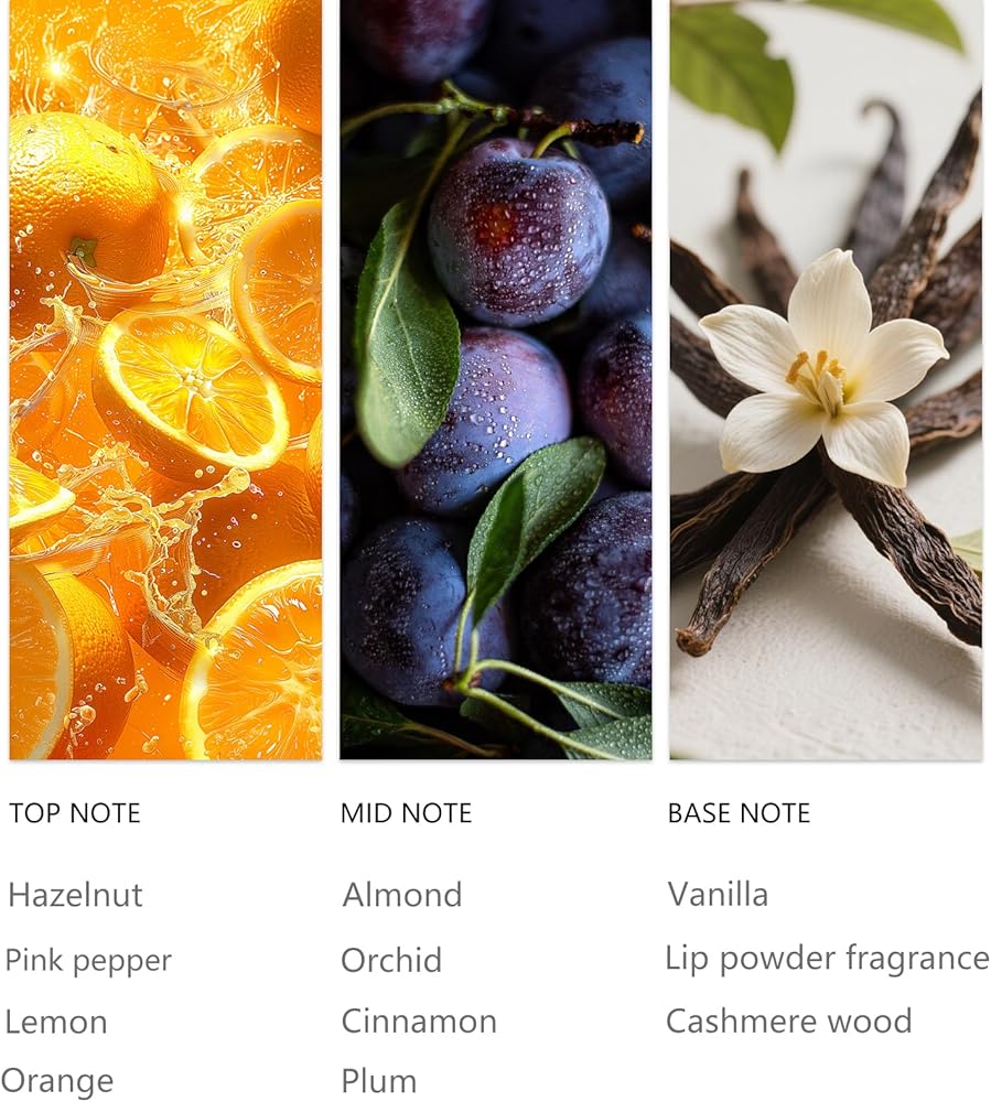 زيت رائحة الفندق الفاخر: انغمس في احتضان مريح لرائحة الفانيليا العطرية. يبدأ بمكونات منعشة من البندق والفلفل الوردي والليمون والبرتقال، ويتحول إلى قلب غني من اللوز والأوركيد والقرفة والبرقوق ويستقر في قاعدة كريمية مريحة من الفانيليا وبودرة الشفاه وخشب الكشمير.