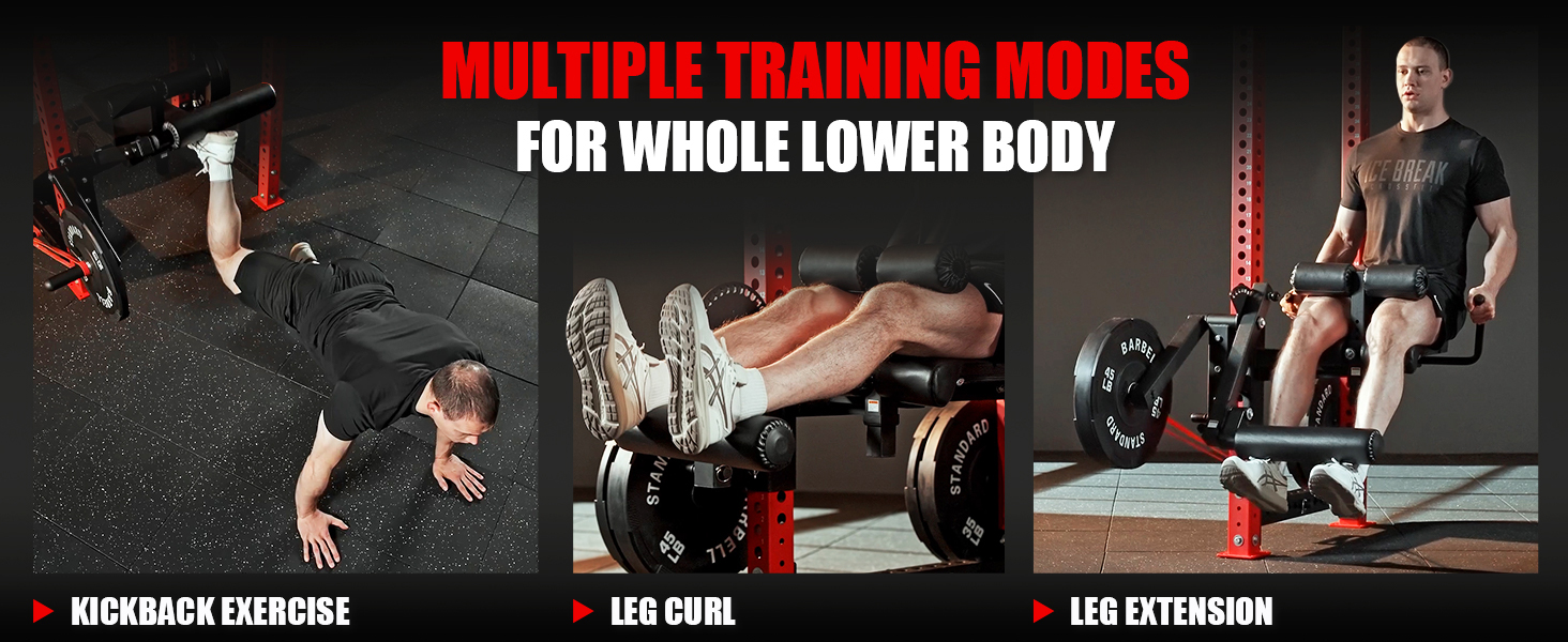 حامل أرجل ذو 8 أوضاع: يتميز بـ 8 حوامل أرجل قابلة للتعديل متباعدة بمقدار بوصة واحدة، بالإضافة إلى مقبضين لتثبيت الفخذين في مكانهما بشكل آمن. يمنع هذا التصميم تحرك الساق أو تأرجحها، مما يضمن حركة دقيقة وتدريبًا فعالاً.