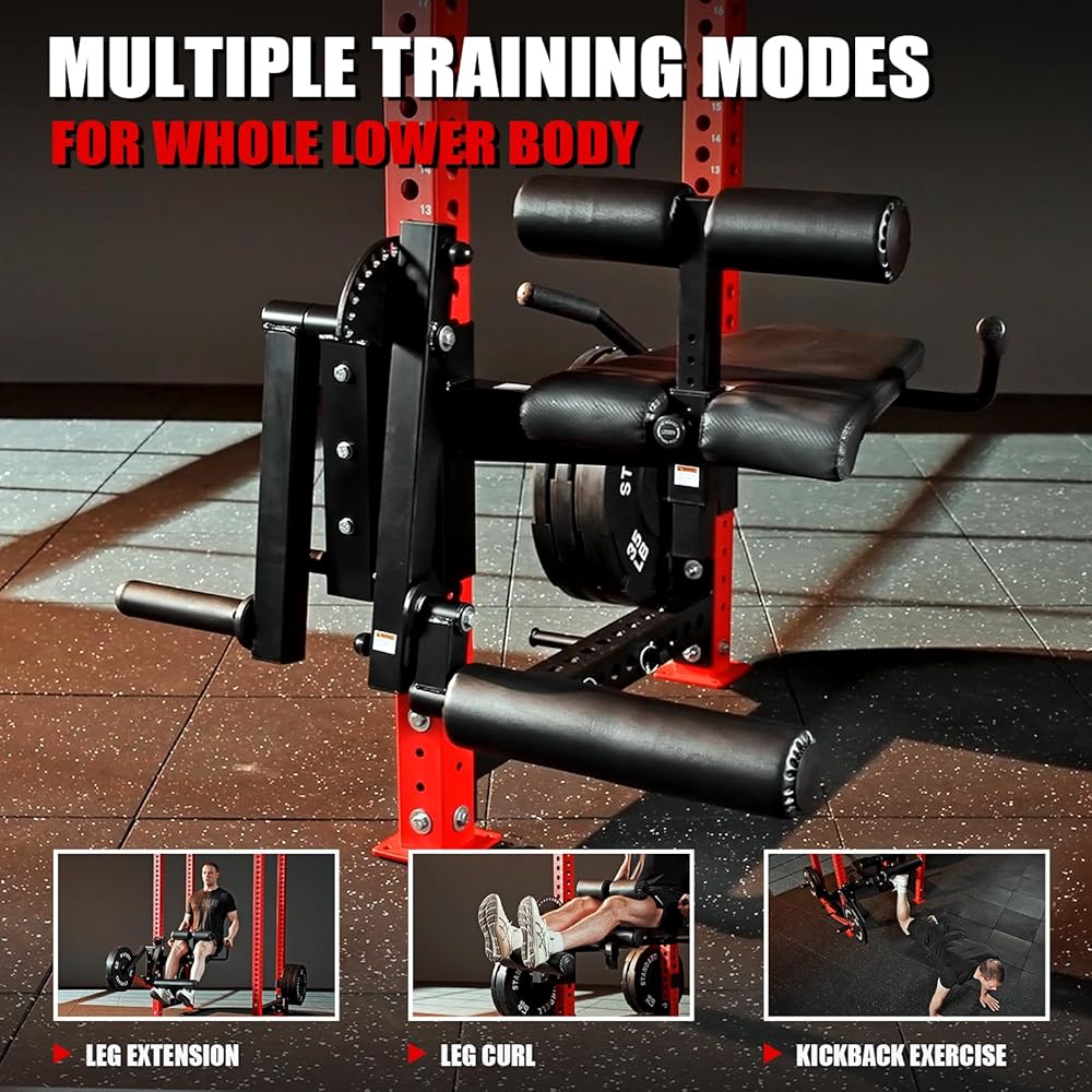 تصميم موفر للمساحة: يعمل ملحق تمديد الساق هذا على تحويل قفص الطاقة الخاص بك إلى آلة تمديد ساق كاملة، مما يوفر مساحة أرضية قيمة. على عكس الآلات التقليدية، يمكن ربطه بسهولة بالوضع المستقيم، مما يزيد من المساحة القابلة للاستخدام في صالة الألعاب الرياضية المنزلية الخاصة بك.