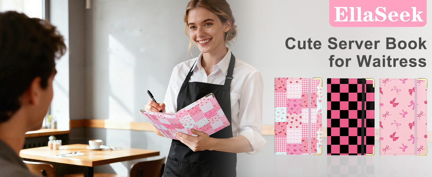 كتاب الخادم اللطيف: يتميز كتاب خادم النادلة هذا بتصميم لطيف، ومناسب للنادلات والسقاة، ويساعدك على البقاء منظمًا وإدارة الطلبات بسهولة؛ مظهره الخاص والأنيق يجعل كتاب منظم الخادم هذا هدية مثالية وجذابة لأصدقائك أو عائلتك