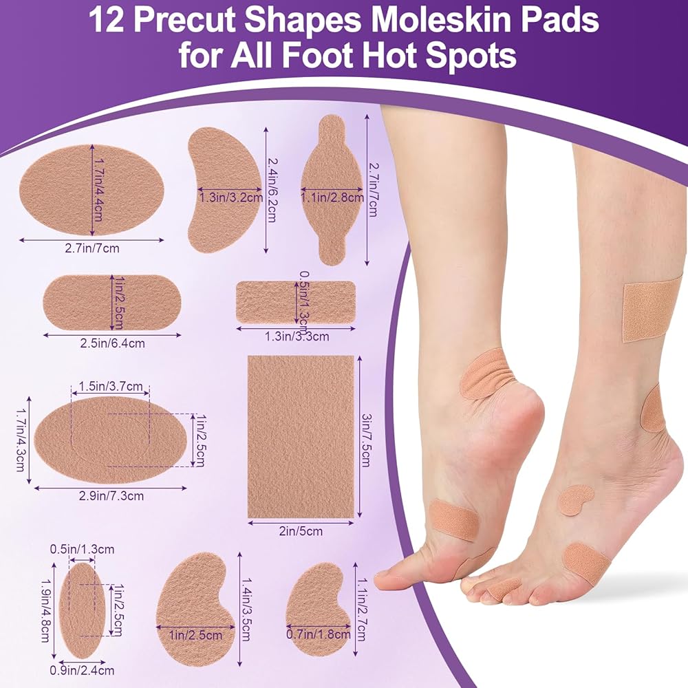 [العناية الشاملة بالقدم من أجل الراحة اليومية] تتضمن مجموعة العناية الكاملة بالقدم كل شيء لمنع وتخفيف الانزعاج. تحصل على 12 عبوة من وسادات مولسكين القياسية مقاس 2x3 بوصة، مثالية لتغطية المناطق الأكبر. بالإضافة إلى ذلك، 6 أوراق مقطوعة مسبقًا مثالية للاستخدام كجلد مولي لأصابع القدم والكعب ومقدمة القدم: 12 وسادة بيضاوية، 6 أشرطة طويلة، 6 وسادات على شكل ساعة، و12 قطعة هلالية. للحصول على أقصى قدر من التنوع، توفر 6 أوراق أخرى 66 قطعة بأشكال مختلفة مقطوعة مسبقًا، مما يوفر حاجزًا مريحًا ضد الاحتكاك طوال اليوم.