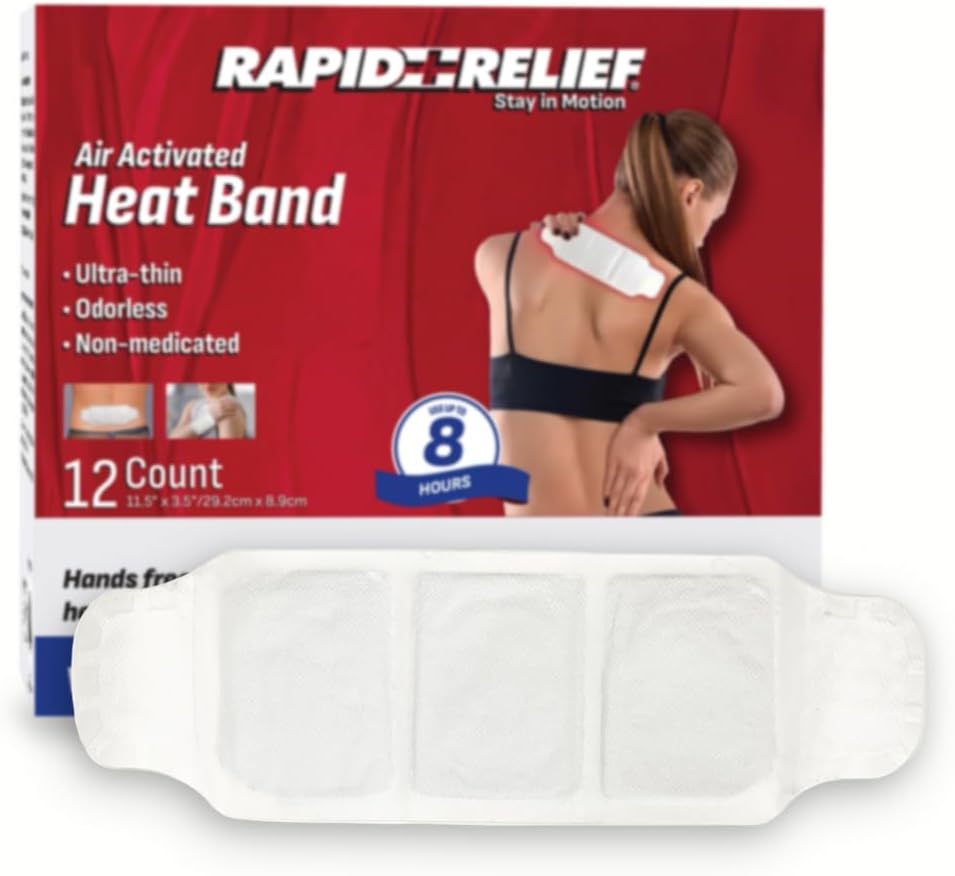 Hands-Free, Drug-Free Relief – Adhesive backing keeps the heat band in place while providing pain relief without medication