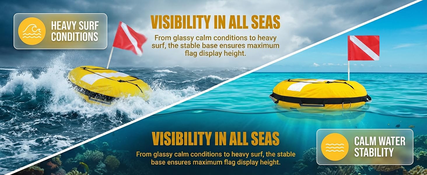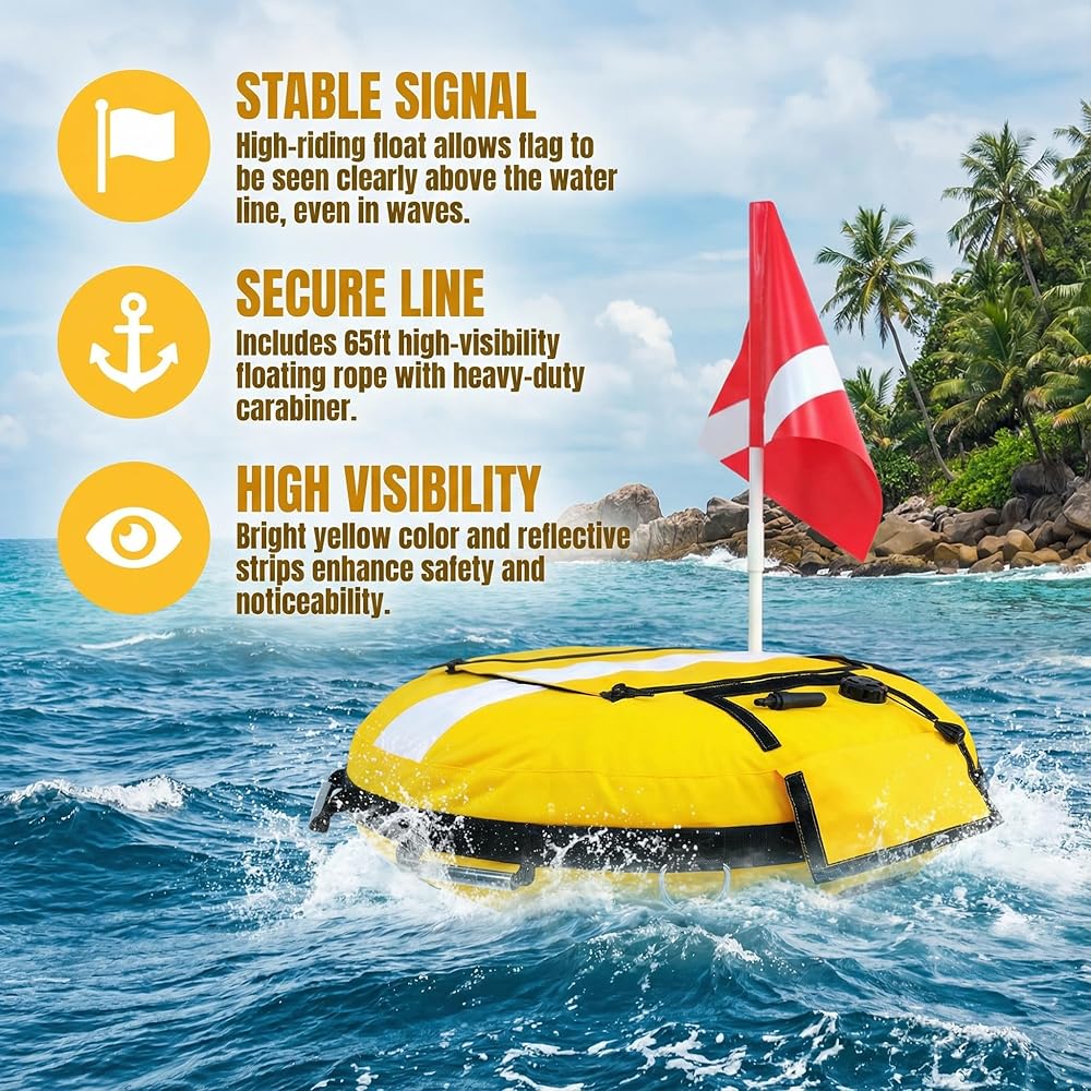 VERSATILE WATER USE: Ideal for scuba diving, snorkeling, spearfishing, and freediving activities, providing a visible surface marker for solo or group water adventures