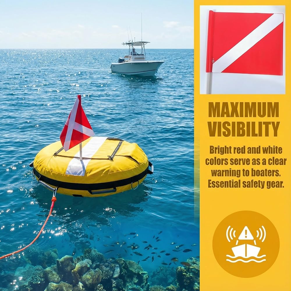 with a red and white dive flag that meets standard safety requirements, this buoy