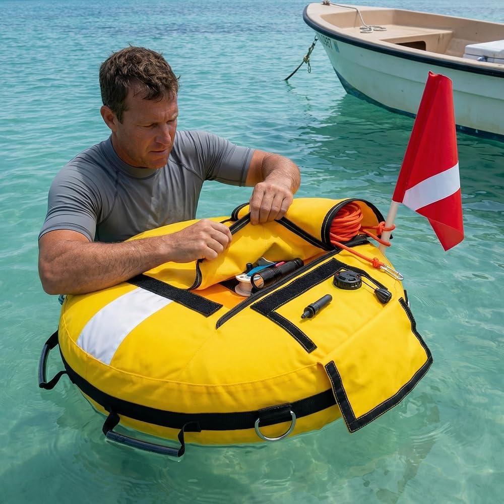 This dive float buoy is an essential safety accessory for scuba divers, snorkelers, and