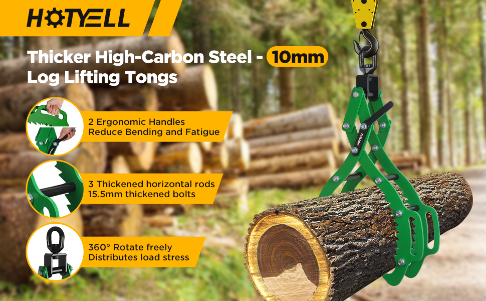 فولاذ عالي الكربون بسمك 10 مم: على عكس الكماشة الخشبية القياسية مقاس 6 مم، 36 بوصة التي تحتاج إلى سعة تحميل أعلى، قمنا بترقية السُمك إلى 10 مم، للتعامل مع أكثر من 6000 رطل عموديًا. مثالية لانزلاق قطع الأشجار، والتعامل مع قطع الأشجار كملحقات للجرارات، مما يضمن المتانة تحت الأحمال الثقيلة.