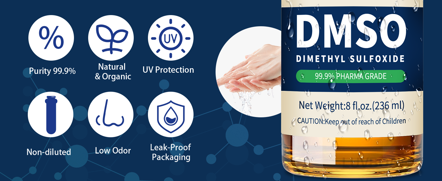 DMSO عالي النقاء (ثنائي ميثيل سلفوكسيد) - مذيب نقي بنسبة 99.9%، معالج من مصادر الخشب الطبيعي للحصول على تركيبة متسقة وأقل رائحة.