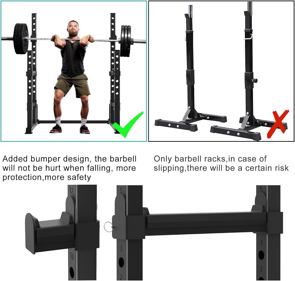 تحميل 600 رطل وآمن للتدريب الفردي: تم تصميم هذا الرف من الفولاذ السميك من الدرجة الصناعية، ويدعم بثقة ما يصل إلى 600 رطل، ويتعامل مع احتياجاتك من الحمل الزائد التدريجي. تتميز بأذرع مراقبة أمان قابلة للتعديل تعمل بمثابة "صديقك في صالة الألعاب الرياضية"، حيث تمسك بالقضيب أثناء فشل العضلات، مما يجعلها آمنة للضغط على مقاعد البدلاء في المنزل المنفرد والقرفصاء.