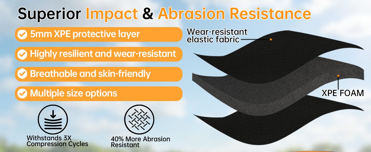 مصمم ليدوم طويلاً، وليس مسطحًا: أثبت العلم ذلك: XPE يقاوم تشوه الضغط. حتى بعد الضربات المتكررة، تحافظ البطانة على سُمكها وبنيتها الأصلية، وتدوم أكثر من المواد التقليدية، لذلك يحمي هذا الشورت المنزلق موسمًا بعد موسم.