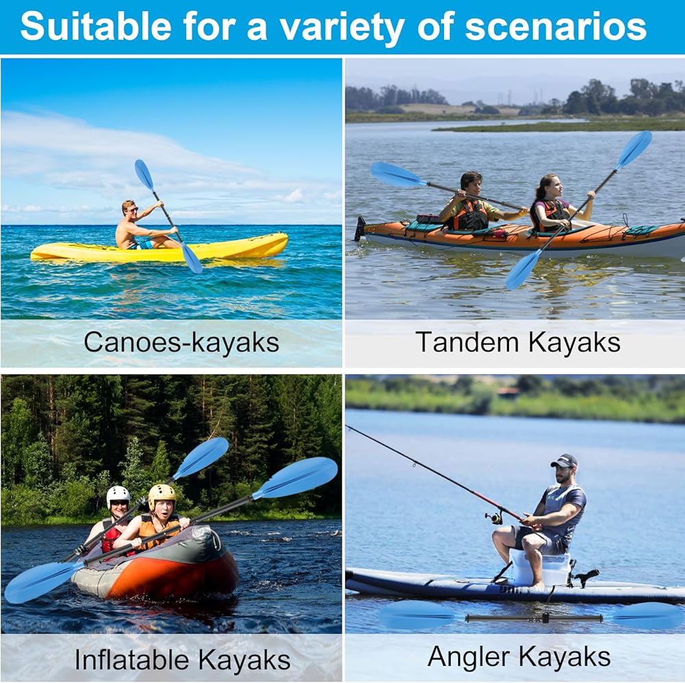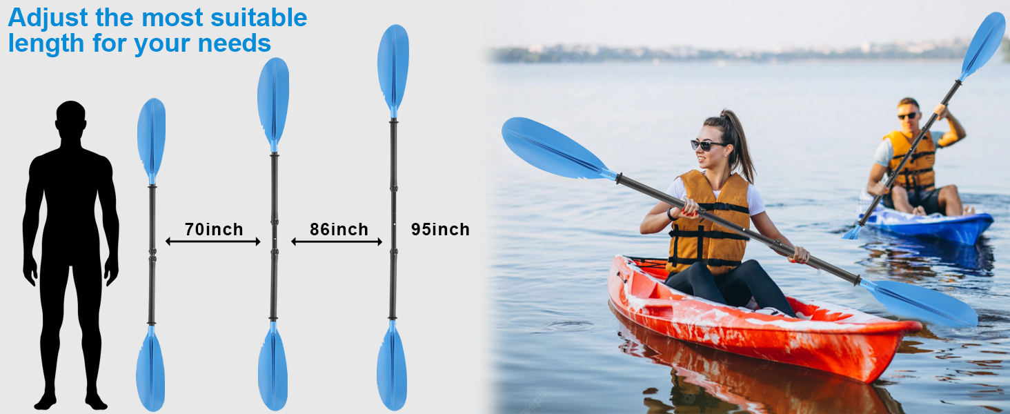 مجداف الكاياك التلسكوبي: يمكن تلسكوب مجداف الزورق الخاص بنا من 70 بوصة إلى 94 بوصة، قم بلف وضع القفل وفقًا لاحتياجاتك للسحب إلى حجم مرضي. بالإضافة إلى ذلك، من أجل الحفاظ على مجداف الكاياك القابل للتعديل من التلف أثناء النقل، نستخدم تصميم الوصلة، يمكنك تقسيمه إلى 4 أجزاء، وهو مناسب لك للحمل والتخزين. إذا واجهت أي مشكلة في عدم تمكنك من تركيب مجداف الكاياك المتداخل، فيرجى الاتصال بنا في الوقت المناسب.