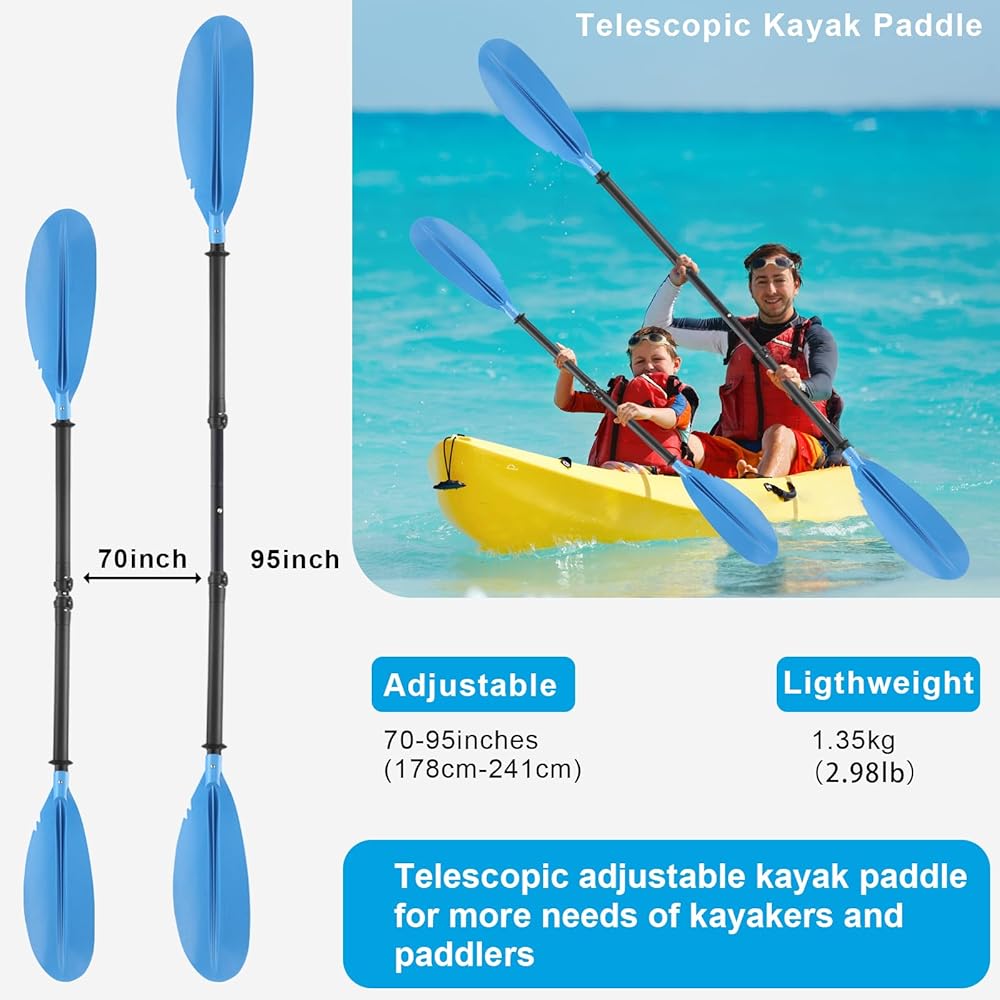 مجداف الكاياك، من 70 بوصة إلى 95 بوصة، مجداف زورق قابل للتعديل لمجاديف القوارب لصيد الأسماك للبالغين مع مقود مجاذيف الكاياك مع مقود مجاذيف الكاياك مادة فولاذية زرقاء