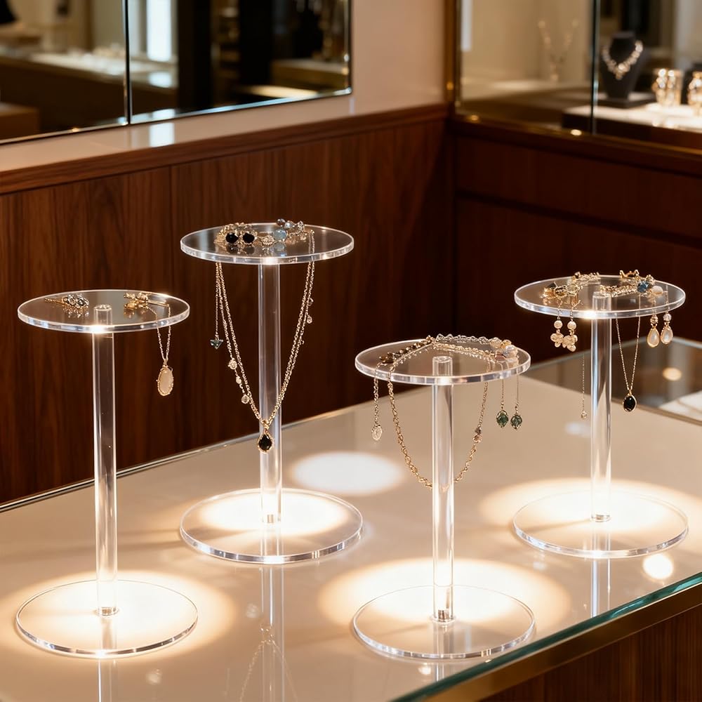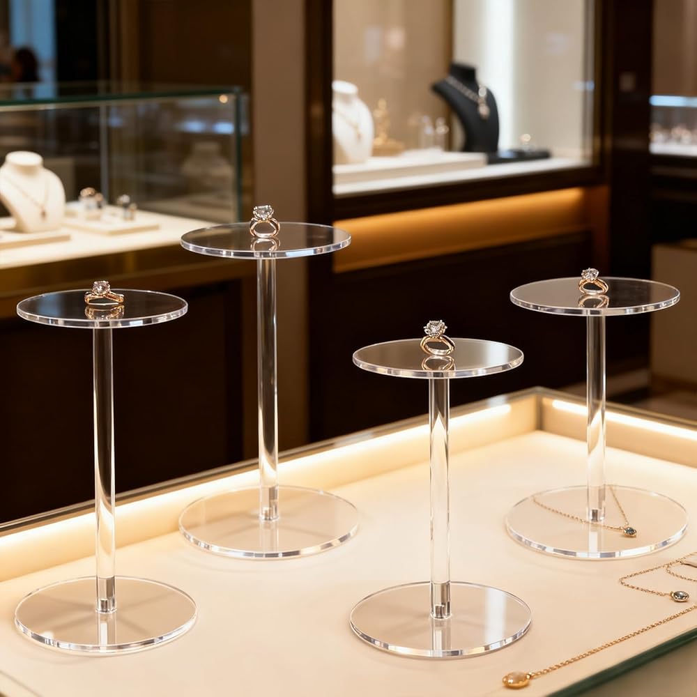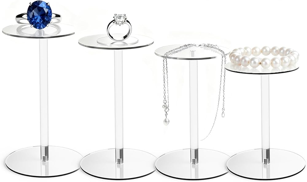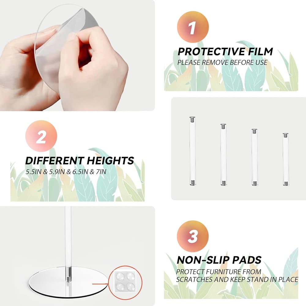 خامة ممتازة: حوامل العرض الشفافة مصنوعة بشكل رائع من الأكريليك عالي الجودة، وقد صُممت حوامل العرض الأكريليك المستديرة هذه لتكون مستقرة وقوية. إنها تحمل مجموعة متنوعة من العناصر بشكل آمن، مما يضمن طول العمر المتين والأداء الموثوق دون التعرض للتلف بسهولة