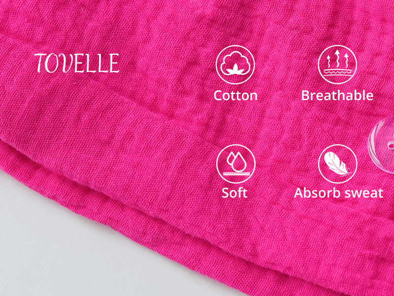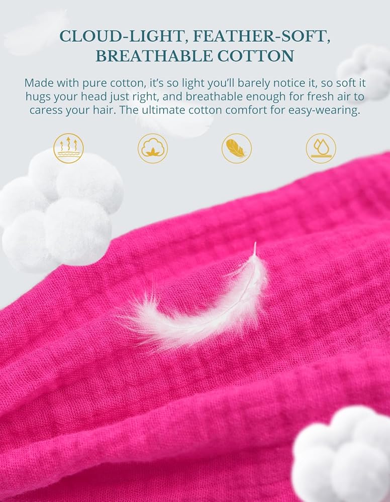 قبعات التنظيف النسائية هذه مصنوعة من نسيج قطني شاش الموسلين، وهو ناعم ومسامي، مما يوفر تجربة ارتداء أكثر راحة مع حماية أفضل للشعر. عند ارتدائها، يمكن أن تمتص كمية صغيرة من العرق من الرأس، مما يبقيك جافًا في بيئات العمل عالية الكثافة مثل غرف العمليات أو العيادات أو المختبرات.
