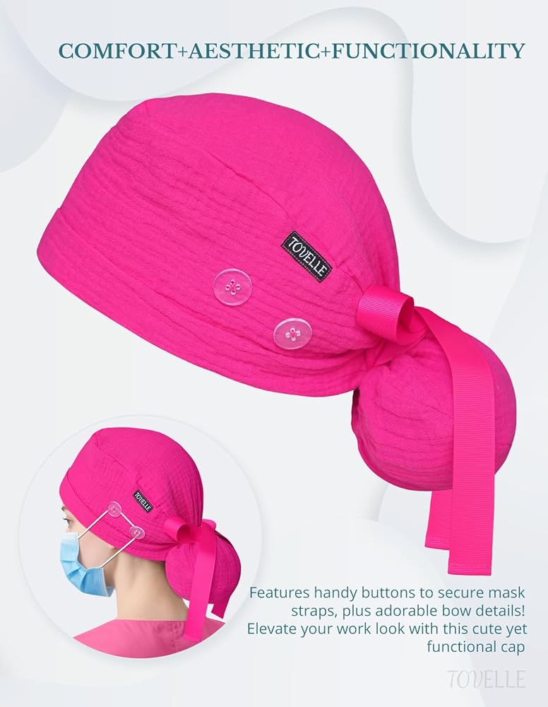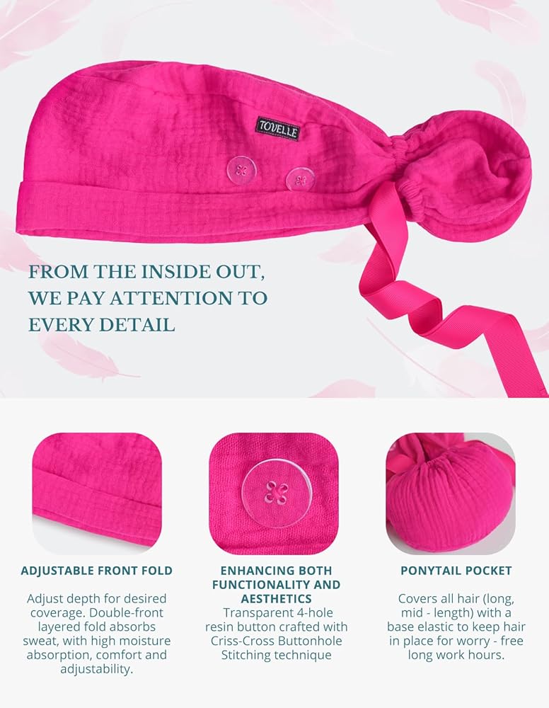 في TOVELLE، نحن متخصصون في صناعة قبعات فرك فوشيا عالية الجودة للنساء على شكل ذيل حصان مصممة للمحترفين الطبيين. تم تصميم هذه القبعات الجراحية للسيدات للأشخاص ذوي الشعر الطويل، ومصنوعة من نسيج ناعم وجيد التهوية، وتضمن تجربة ارتداء ممتعة حتى خلال ساعات طويلة في المستشفيات أو العيادات أو المعامل.