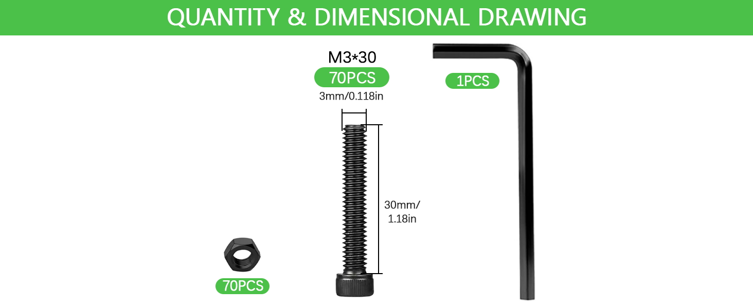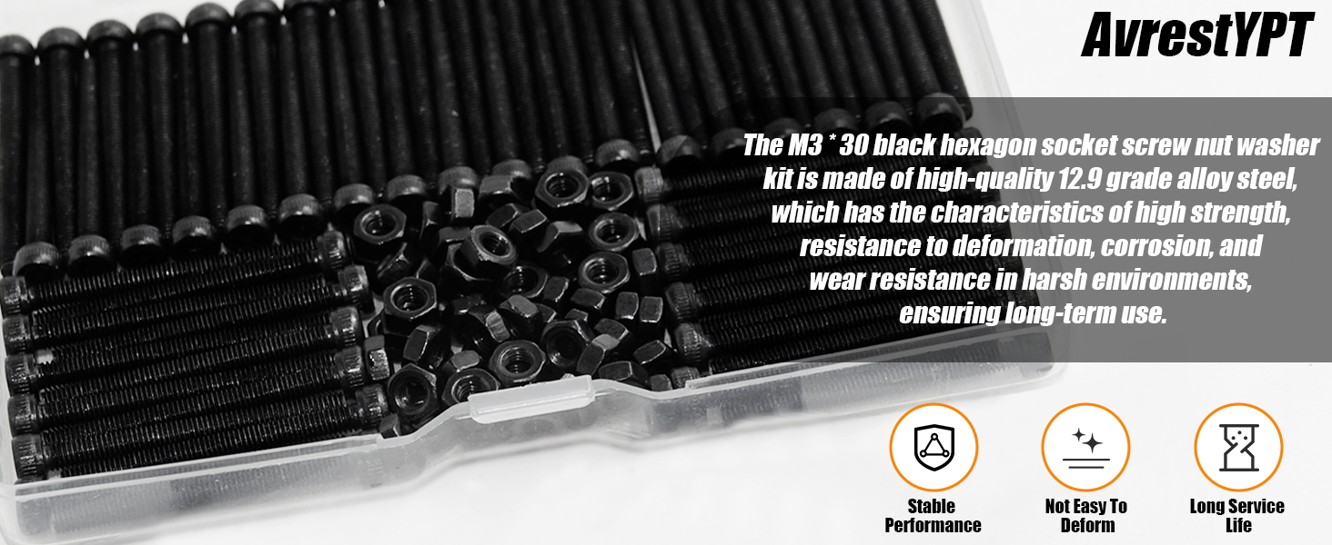 【Well-Made M3 Screws】The M3 × 30mm screws feature a hex socket drive design that delivers more torque and more stable performance. These M3 bolts have clean threads, uniform pitch, no residual burrs, and are true to size.