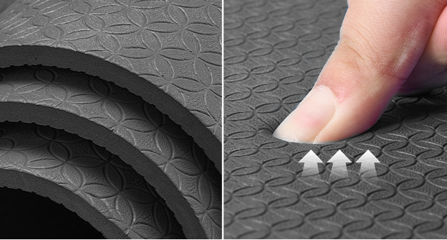The non-slip texture of workout floor mats for home gym firmly grips the floor, offering traction and preventing slips.