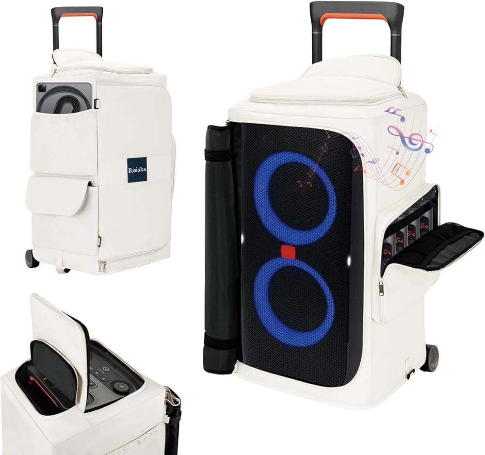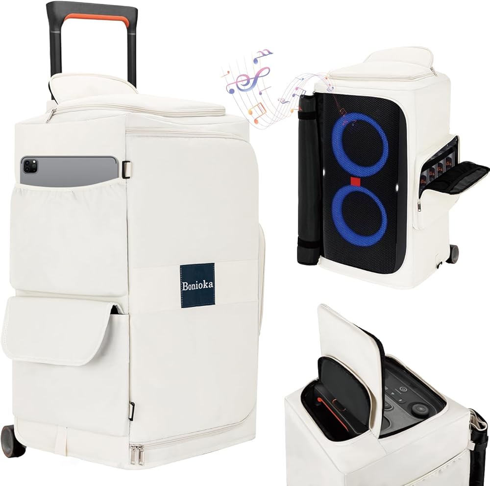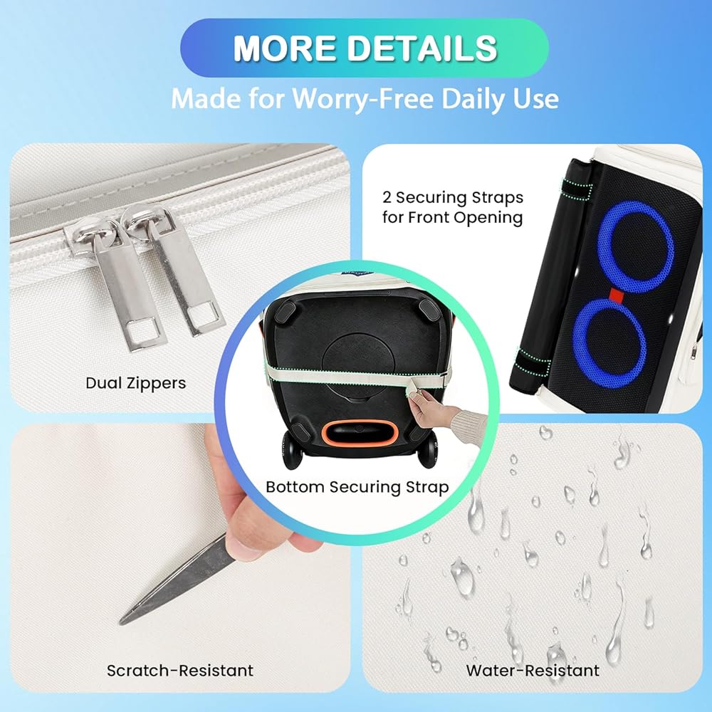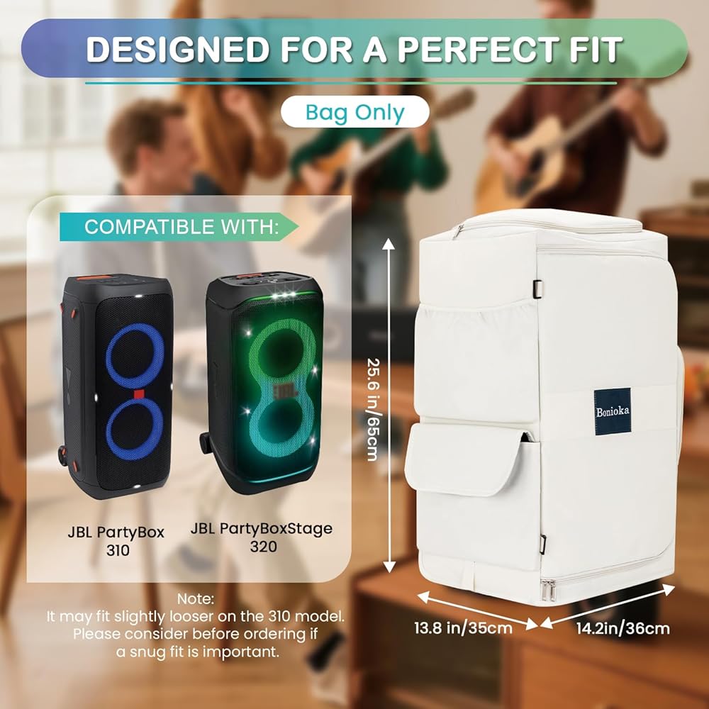 حافظة مكبر صوت متوافقة مع JBL PartyBox 310/320، حقيبة تخزين واقية شديدة التحمل مع جيوب ملحقة، بطانة مبطنة، غطاء مقاوم للغبار والخدش للسفر في الهواء الطلق، أبيض (الجراب فقط)