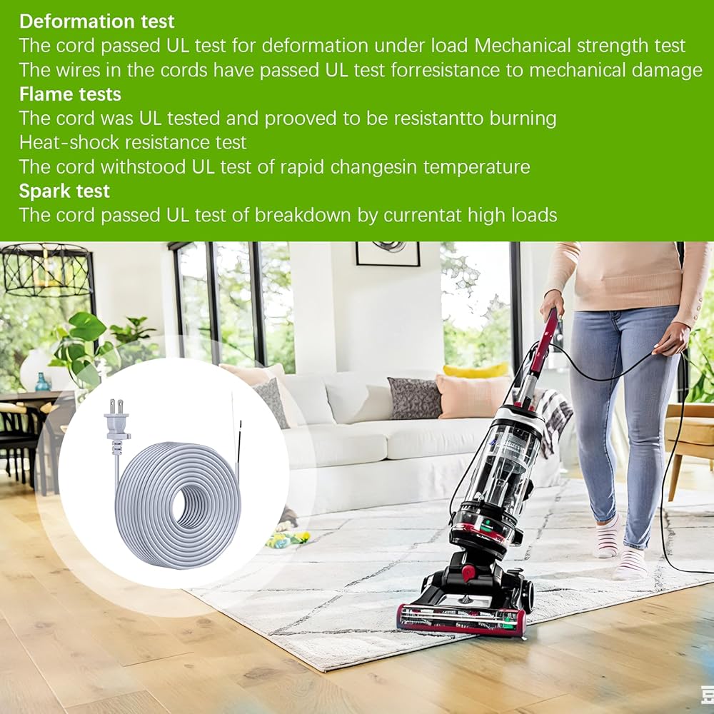• 【Good Value For Money】Electric power cord comes in a ziplock bag with 2 wire polarized plug.Flex jacket copper electrical power cord for small appliances,This cable replacement is just the exact match for the vacuum.If your vacuum cleaner cords has been damaged by your pet, replacing the cord can fix your vacuum and bring your vacuum back to peak performance, saving you the cost of replacing your vacuum cleaner.Please regularly check the AC power cord of the vacuum cleaner.