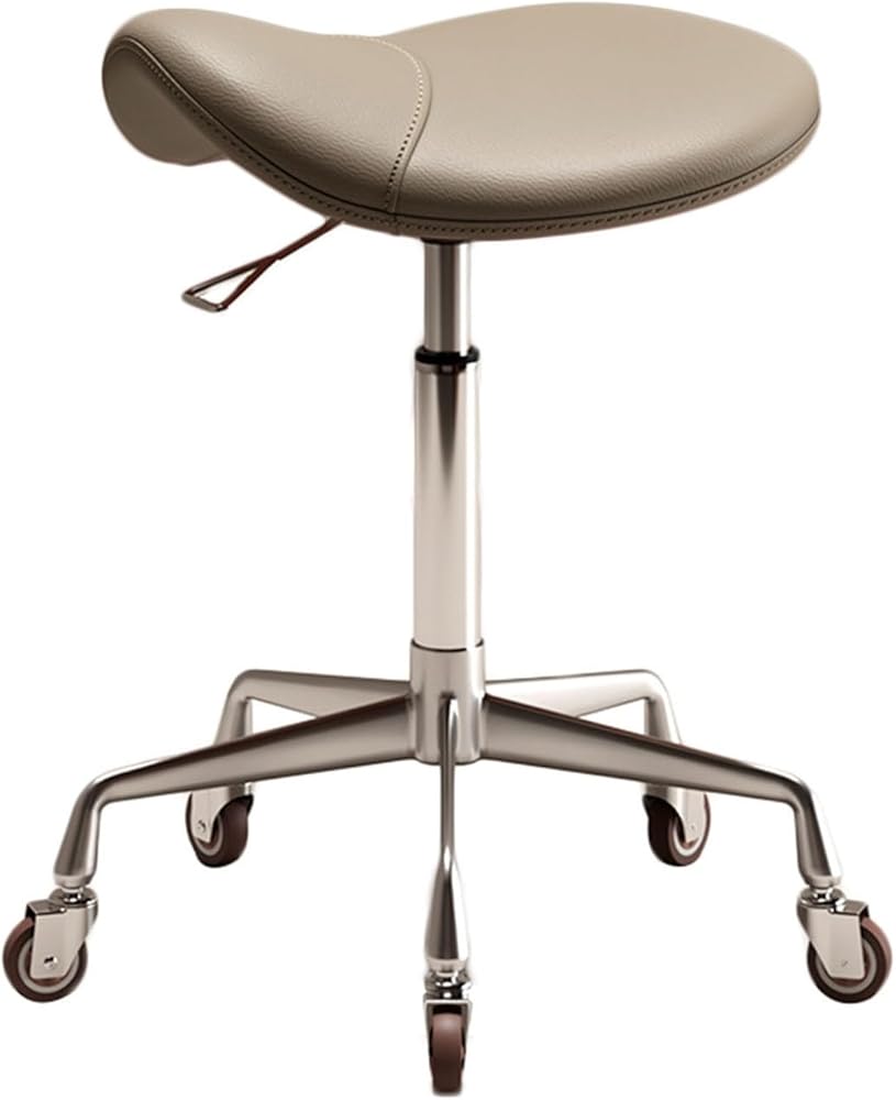 The saddle stool is equipped with a hydraulic lifting gas rod, which has been tested for more than 120,000 times of lifting and lowering, and can be raised and lowered smoothly. The height can be adjusted between 43-58cm to accommodate people of different heights and work requirements