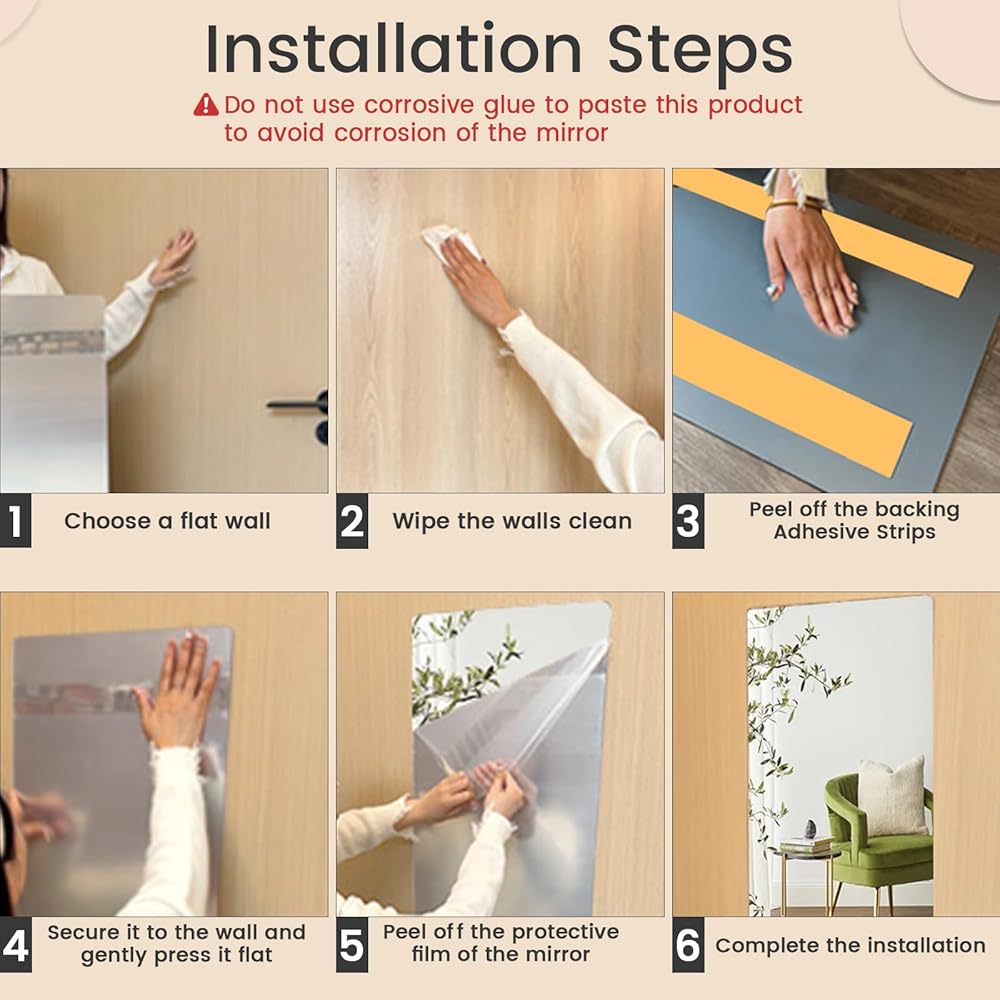 ورقة مرآة ذاتية اللصق من الأكريليك للجدار، بلاط مرآة بلاستيكي غير زجاجي لسلامة الأطفال للجدار مقاس 20 × 57 بوصة 4 قطع