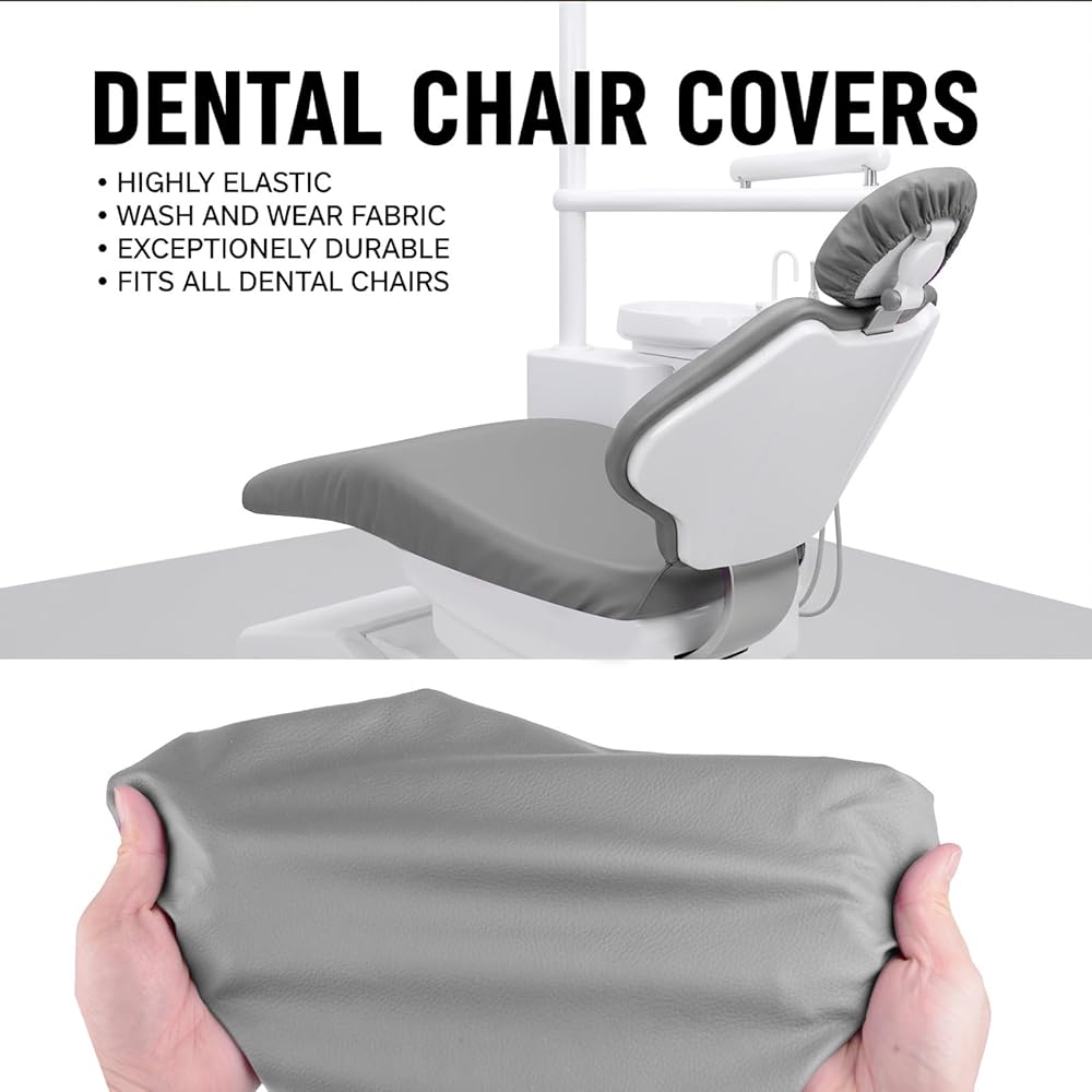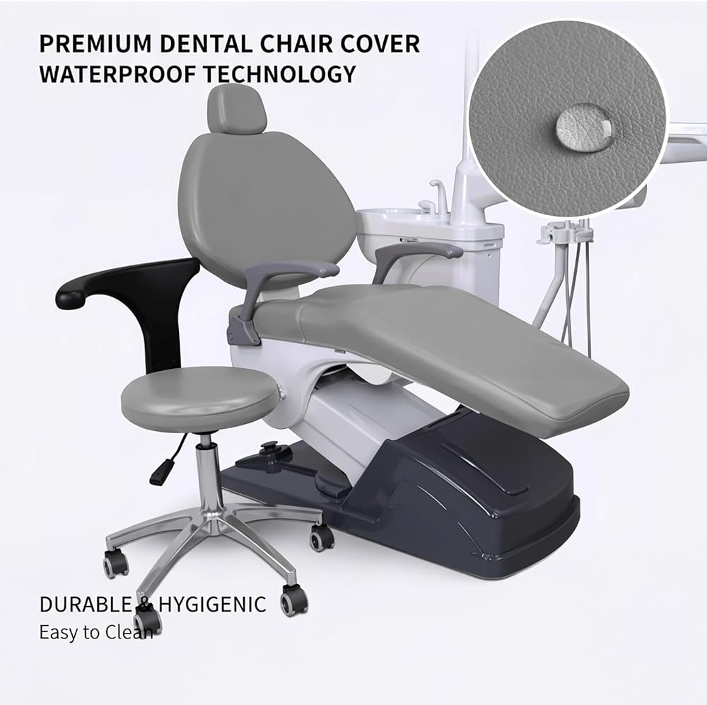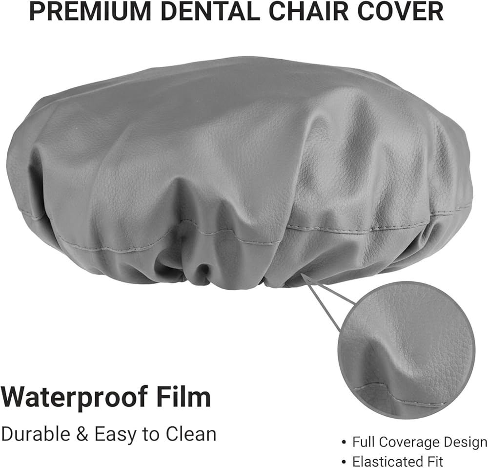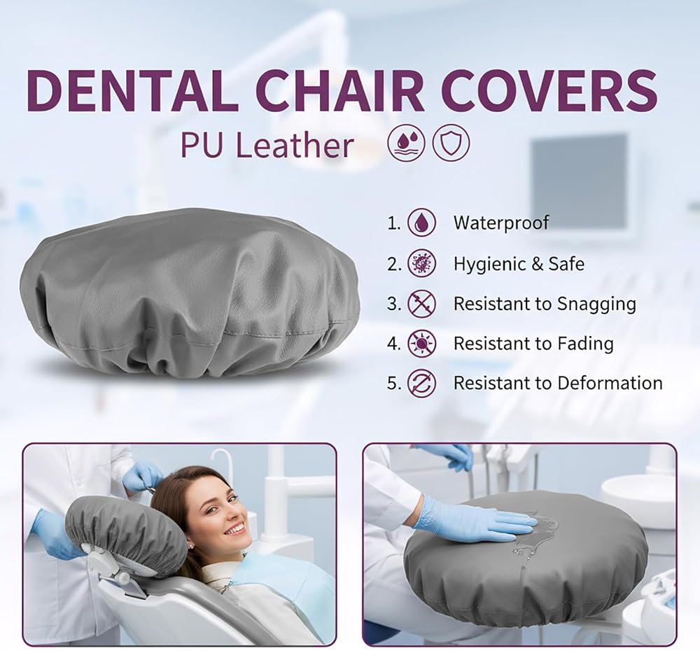 طقم أغطية كراسي الأسنان مكون من 4 قطع - جلد بولي يوريثان بالكامل، حافظة واقية مقاومة للماء ومرنة لمعدات طبيب الأسنان (متوسط الحجم، رمادي)