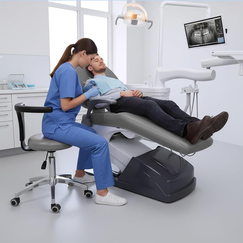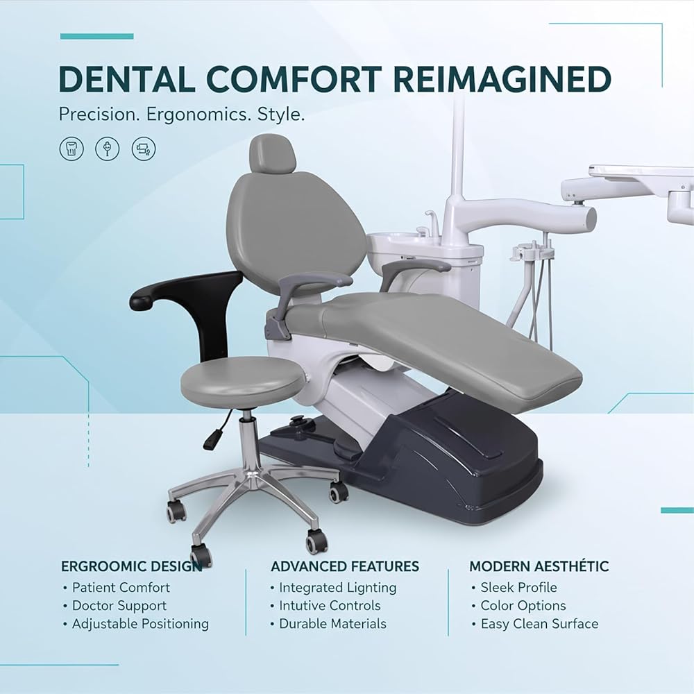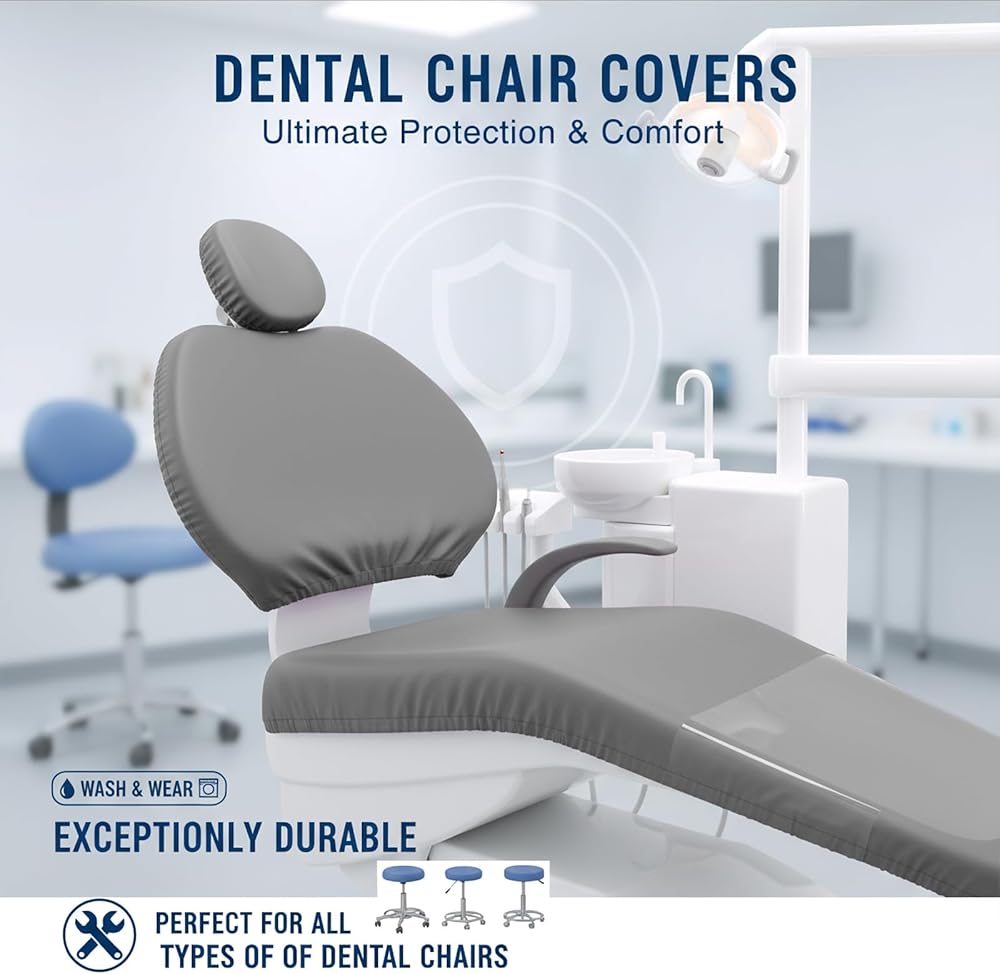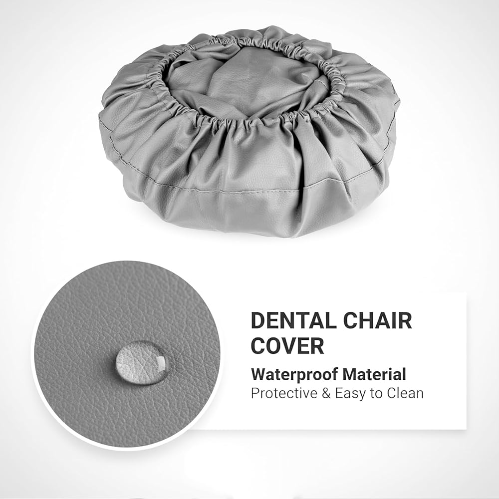طقم أغطية كراسي الأسنان مكون من 4 قطع - جلد بولي يوريثان بالكامل، حافظة واقية مقاومة للماء ومرنة لمعدات طبيب الأسنان (متوسط الحجم، رمادي)
