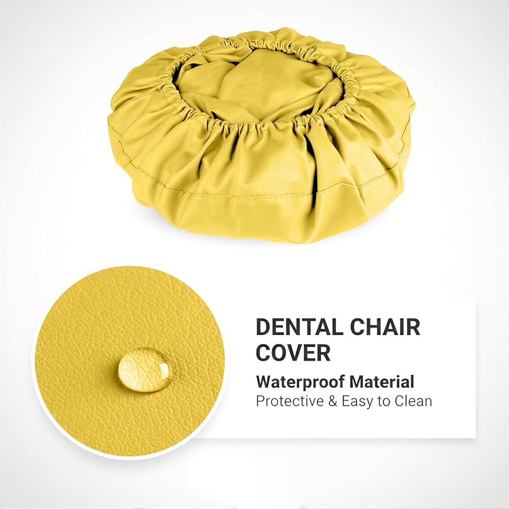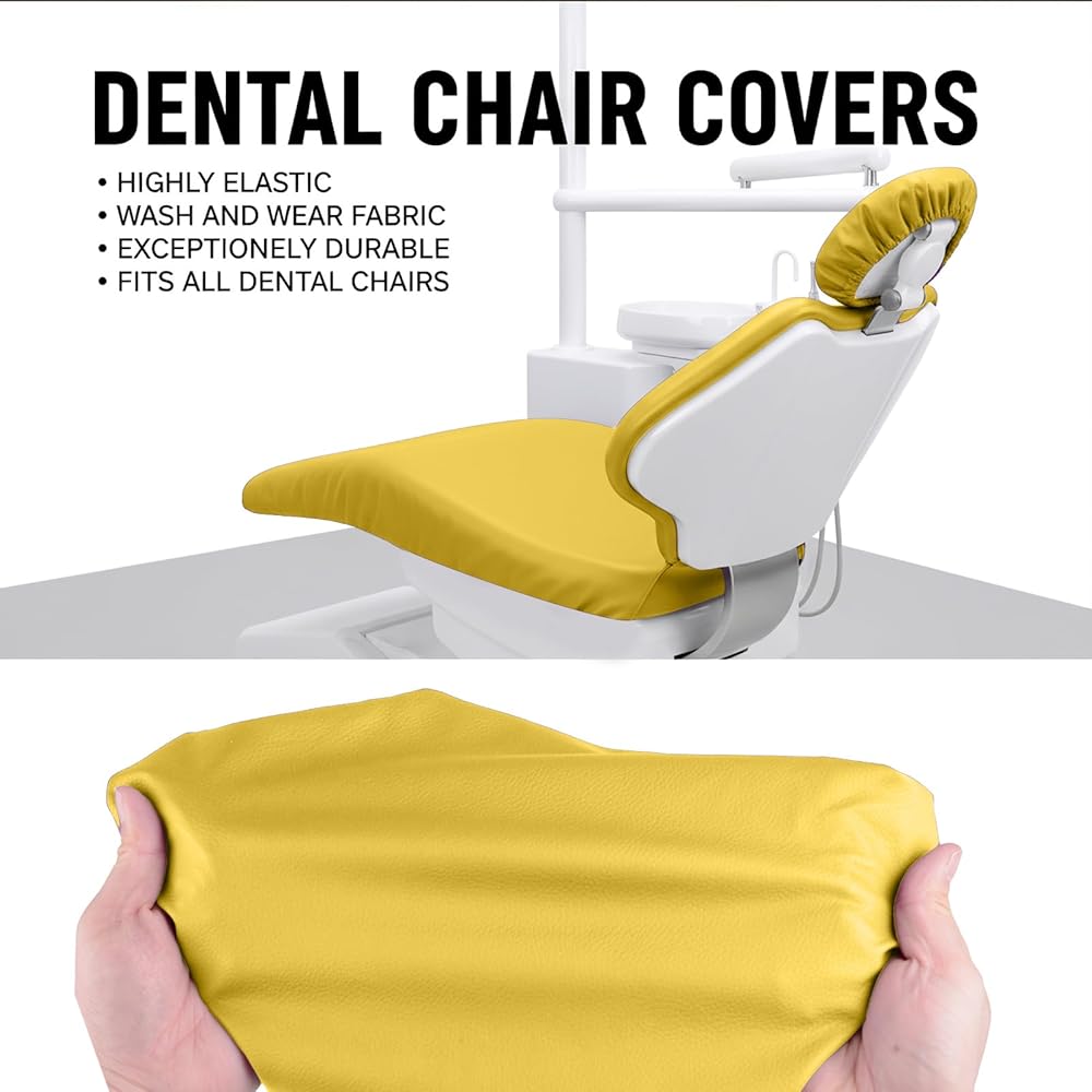 طقم أغطية كراسي الأسنان مكون من 4 قطع - جلد بولي يوريثان بالكامل، حافظة واقية مقاومة للماء ومرنة لمعدات طبيب الأسنان (متوسط الحجم، أصفر)