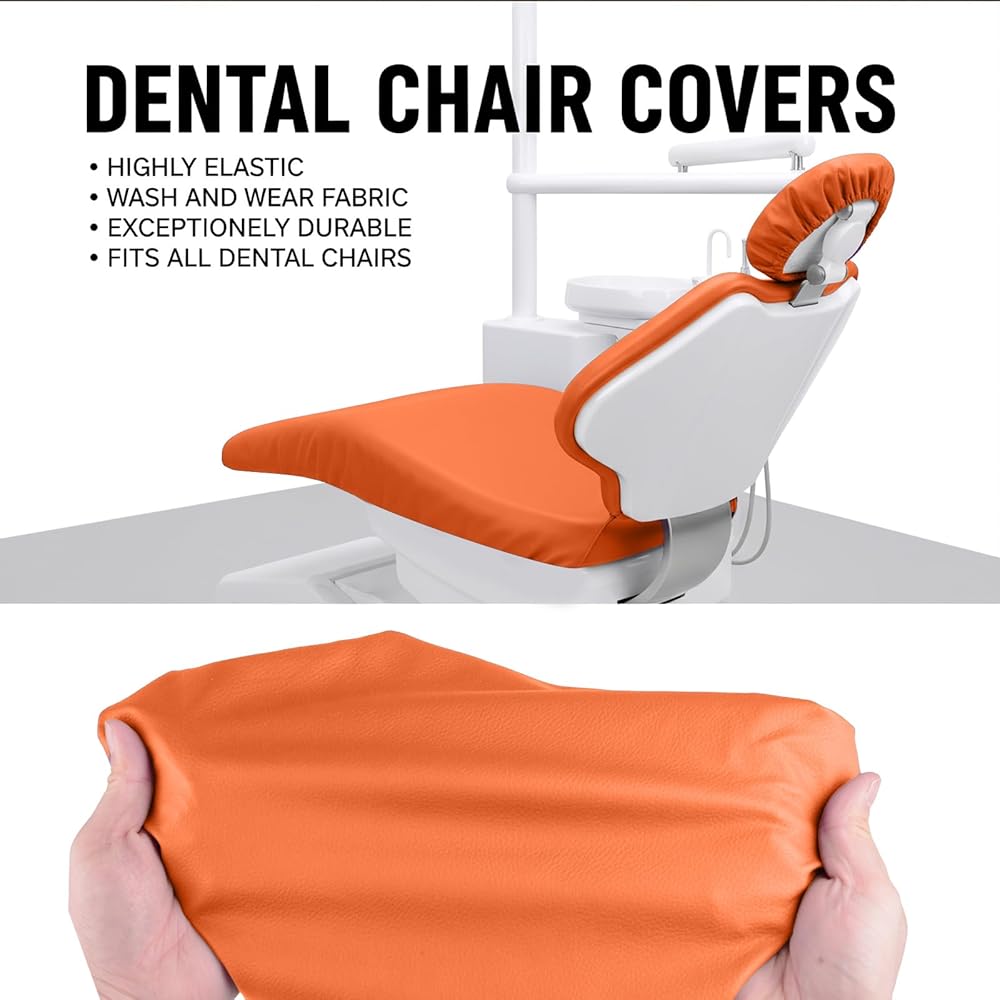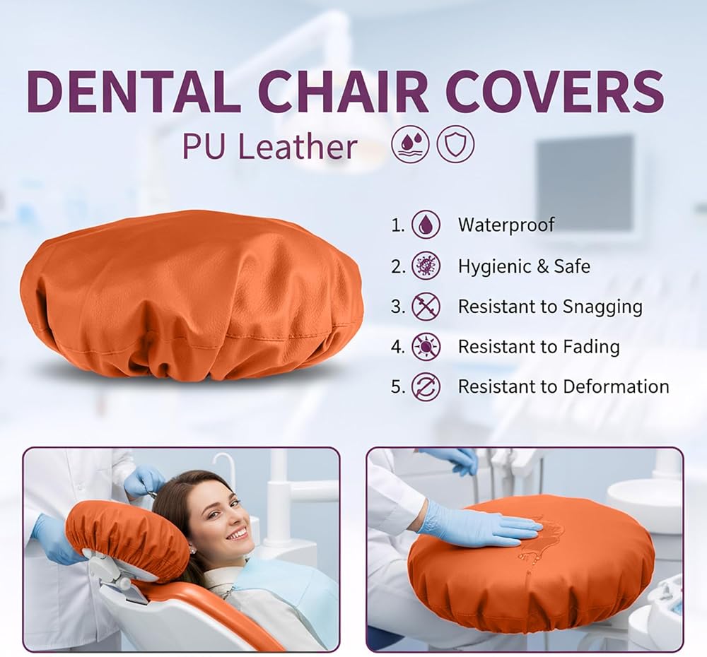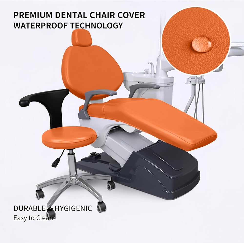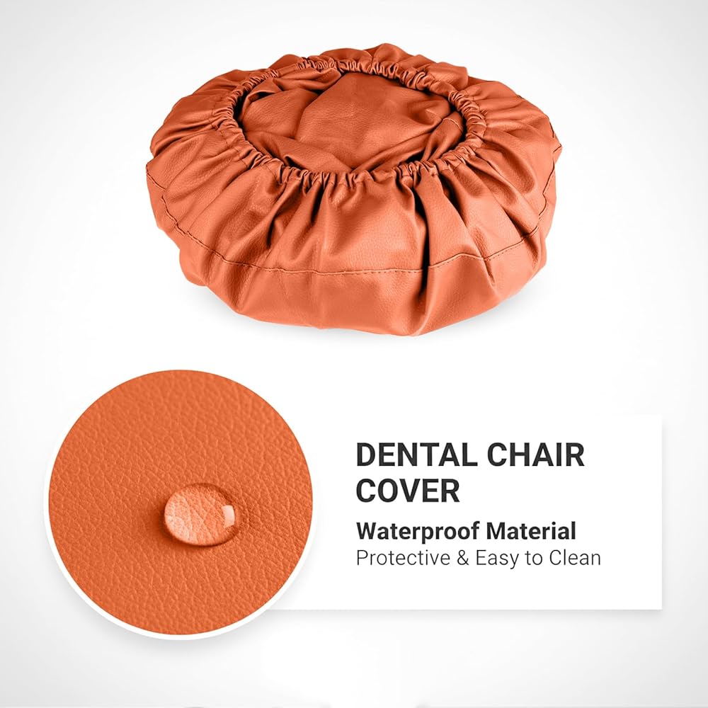 طقم أغطية كراسي الأسنان مكون من 4 قطع - جلد بولي يوريثان بالكامل، حافظة واقية مقاومة للماء ومرنة لمعدات طبيب الأسنان (متوسط الحجم، برتقالي)