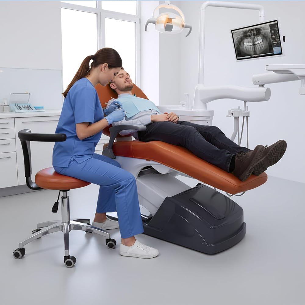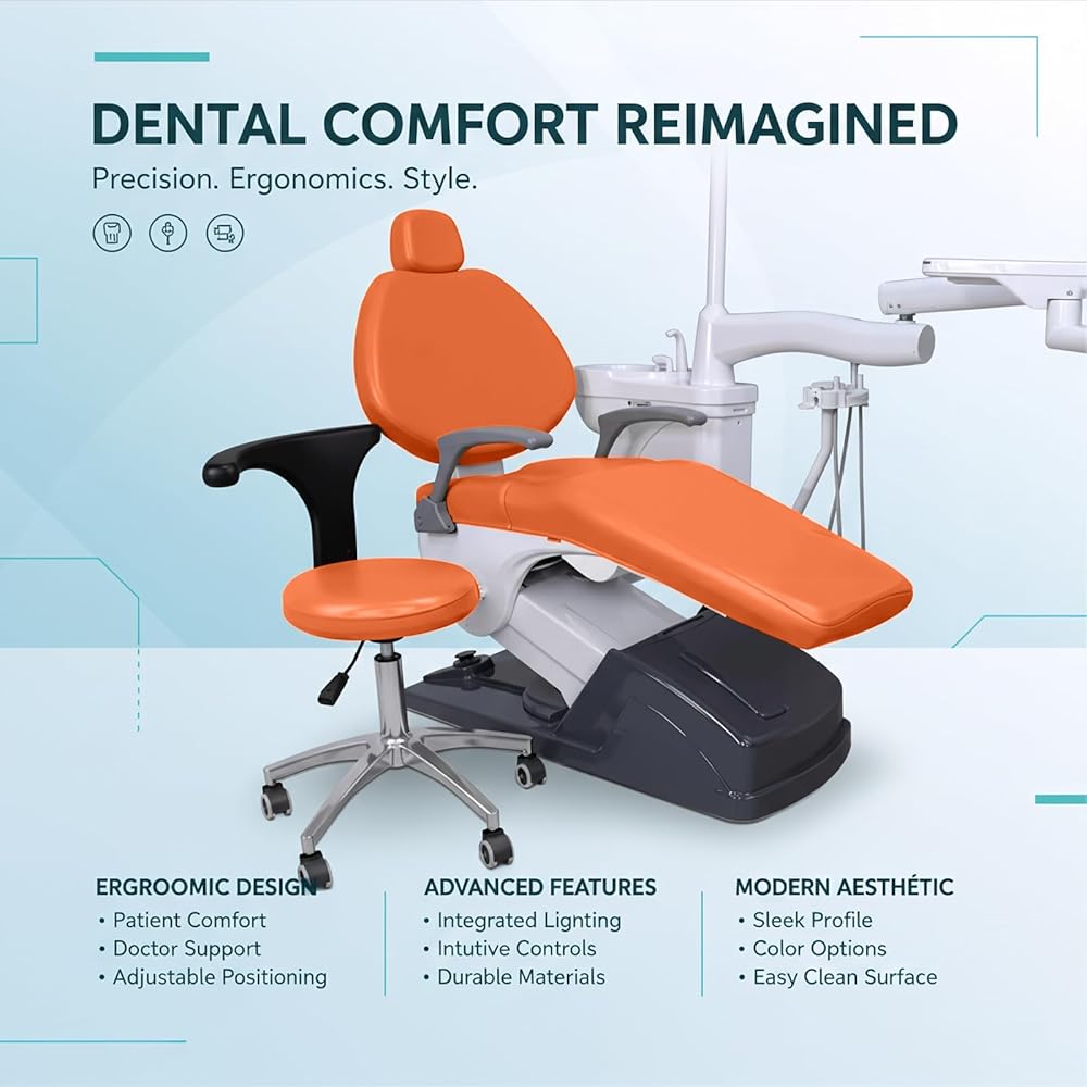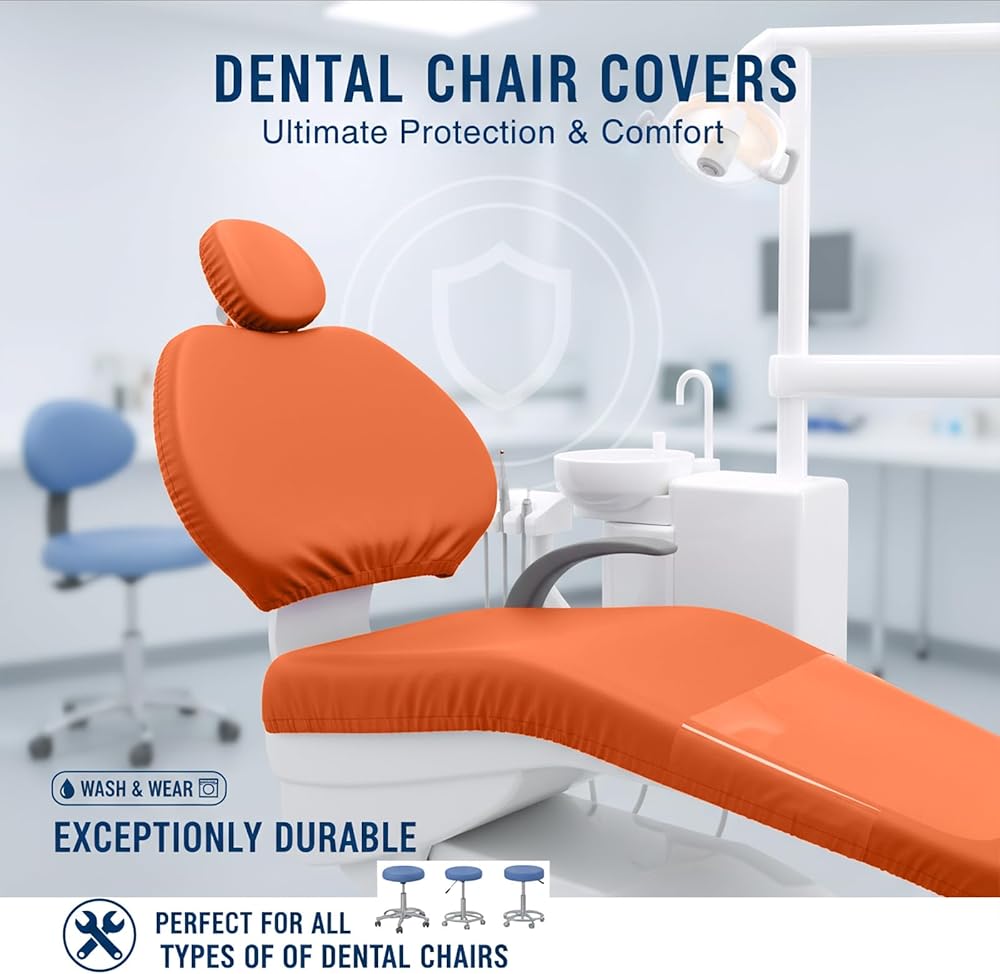 طقم أغطية كراسي الأسنان مكون من 4 قطع - جلد بولي يوريثان بالكامل، حافظة واقية مقاومة للماء ومرنة لمعدات طبيب الأسنان (متوسط الحجم، برتقالي)