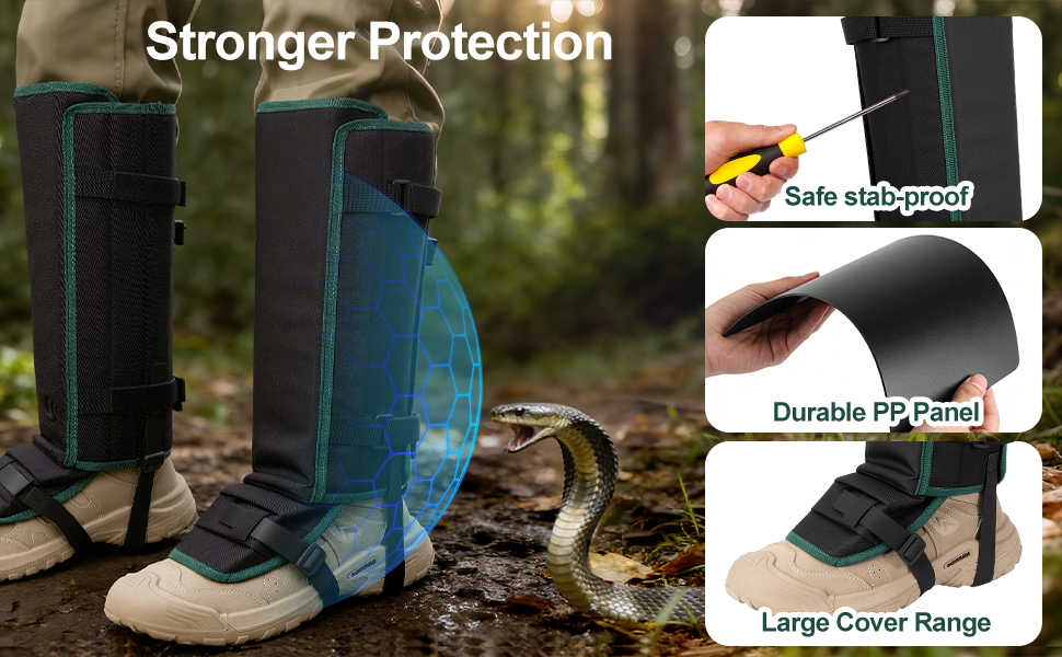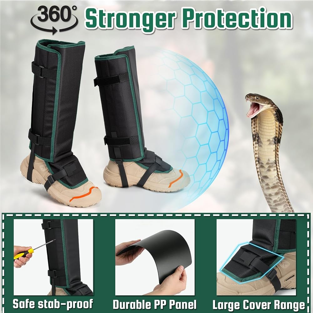 • 【جراميق حماية قوية من عضات الثعبان】- الجراميق الخاصة بنا للمشي لمسافات طويلة مصنوعة من مادة فريدة من نوعها، وألواح من البولي بروبيلين السميكة وقماش أكسفورد عالي التحمل 600D، بما يكفي لتحمل عضات الثعبان. تحمي الجراميق المقاومة للثعابين بشكل فعال من الأفاعي الجرسية والثعابين الأخرى والأشواك وأشواك الصبار وغيرها من المخاطر التي قد تواجهها في الغابات أو الصحاري