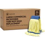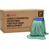 Microfiber Wholesale's Large Microfiber Tube Mop Refill is like no other mop you've ever used. This microfiber cloth mop is made from woven microfiber material, like what microfiber towels are made from. The microfiber is sewn into tubes then looped like a traditional wet mop. The mop is lint free. It's hundreds of thousands of split fibers create an incredible amount of surface area which gives the mop its ability to absorb liquid as well as pick up and hold dust, dirt and debris. The loops are bound by a mesh head band which promotes faster drying. They also feature a tail band which ensures even coverage; the tail band also prevents the mop from getting tangled during the laundering process.