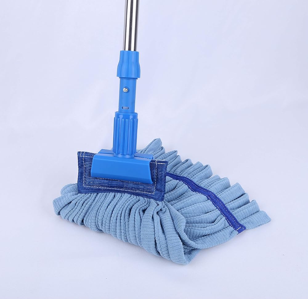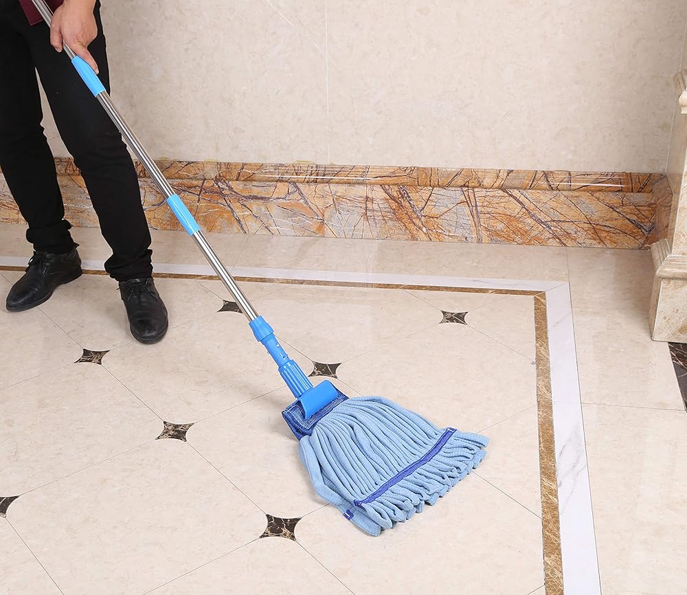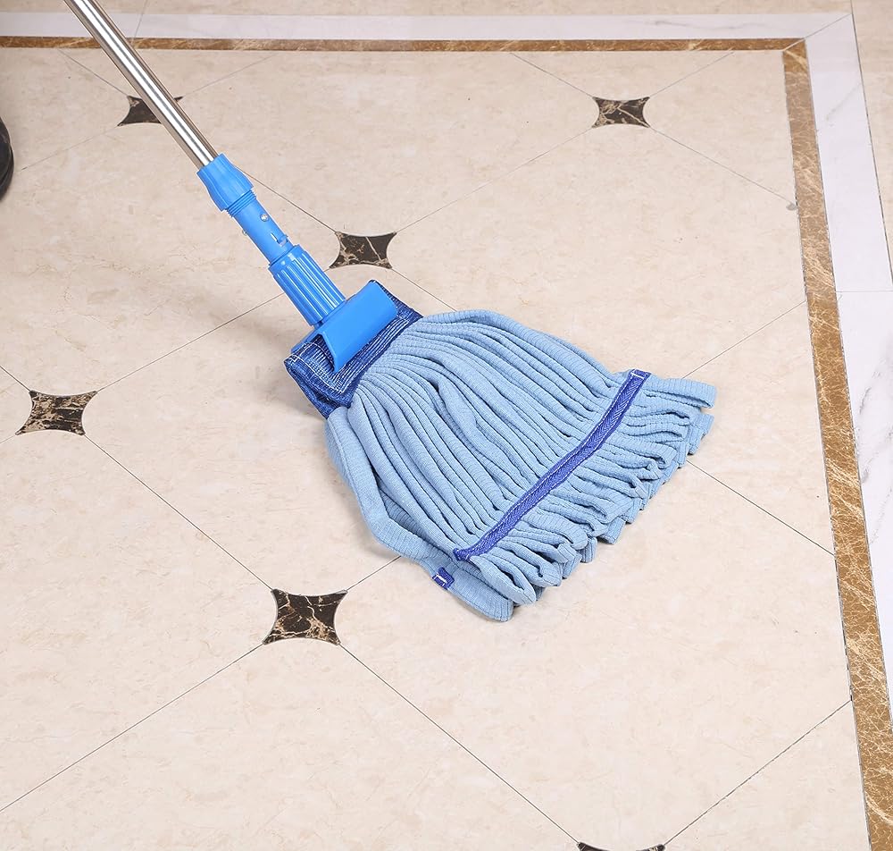 مجموعة أدوات تنظيف الأرضيات الممسحة الرطبة ذات القوة الصناعية | مجموعة ممسحة منزلية كبيرة سعة 24 أونصة مع مقبض تمديد من الفولاذ المقاوم للصدأ (أزرق)
