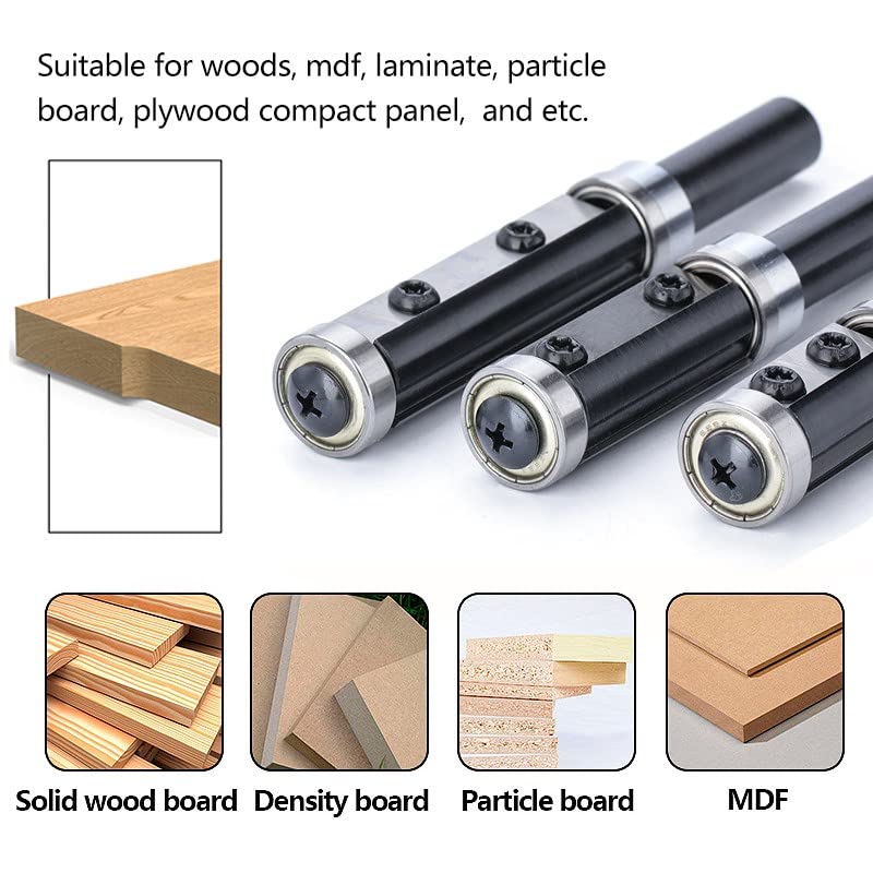 4. This router bit is perfect for wood Flush Trim or bottom cleaning or grooving. Used on soft and hard woods, particle board, MDF, plywood compact panel, laminate, acrylic and etc.
