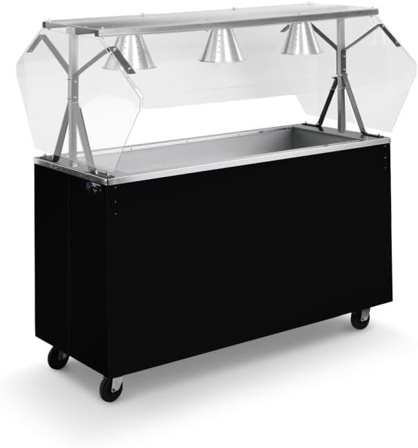 The 2-Series non-refrigerated cold-food station by Vollrath adds convenience and versatility to your buffet, cafeteria or other serving area. The seamless stainless steel work surface is durable and long-lasting, and the scratch-resistant vinyl-clad carbon steel exterior resists signs of wear to maintain its like-new appearance. Each well features polyurethane foam insulation, which helps maintain cold serving temperatures. The buffet-style breath guard offers superior protection against contaminants while still ensuring easy access to food items. The black base creates a sleek appearance and features a storage compartment with a door that keeps everything safe and secure. A 1-inch drain ensures quick and easy cleanup. Display and serve a variety of cold-food items from a versatile, portable station Scratch-resistant vinyl-clad carbon steel exterior resists signs of wear Seamless, one-piece 20-gauge 300-Series stainless steel work surface is durable and long-lasting Foamed-in-place polyurethane insulation maintains temperatures Black base features a storage compartment with a door to keep everything safe and secure Buffet-style breath guard protects food while still allowing easy access 1-inch drain makes cleanup easy Spillage pans required, sold separately Made in the USA NSF-certified Please note this is a made-to-order item. These items require additional time for fulfillment. Made-to-order items cannot be changed, canceled or returned and may be subject to a minimum-order quantity. Contact your Vollrath sales representative for details.