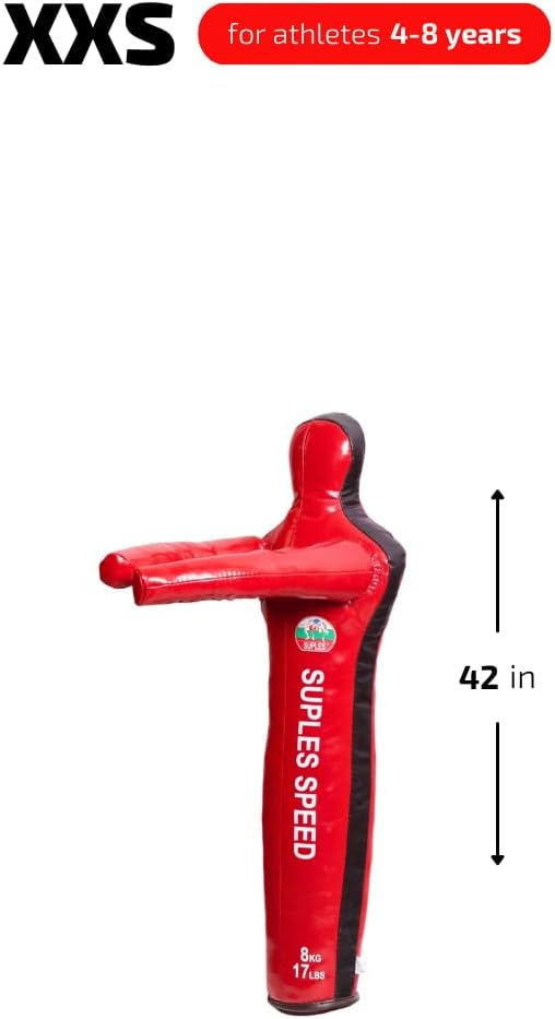 The Suples Speed Wrestling Dummy is designed to help athletes improve grappling techniques, speed, and conditioning through high-repetition training. Developed by world-renowned wrestling coach Ivan Ivanov, this training dummy allows fighters to perform throws, takedowns, and grappling movements at a much faster pace than traditional partner drills. The unique weight distribution and internal stuffing create a natural bounce-back effect, allowing athletes to perform continuous throwing drills and timed interval sets. This helps develop explosive power, endurance, and technical precision while reducing dependency on training partners. The Suples Speed Dummy is widely used by wrestlers, MMA fighters, judo athletes, and combat sports practitioners as both a warm-up tool and conditioning device. Practicing techniques during warm-ups helps athletes sharpen their skills while preparing for intense training sessions.Constructed from durable vinyl, the dummy is built to withstand repeated throws and heavy use in wrestling rooms, gyms, and training facilities.Available in multiple sizes and weights to match different athlete levels and training needs, the Suples Speed Wrestling Dummy is a powerful training tool for improving grappling performance.