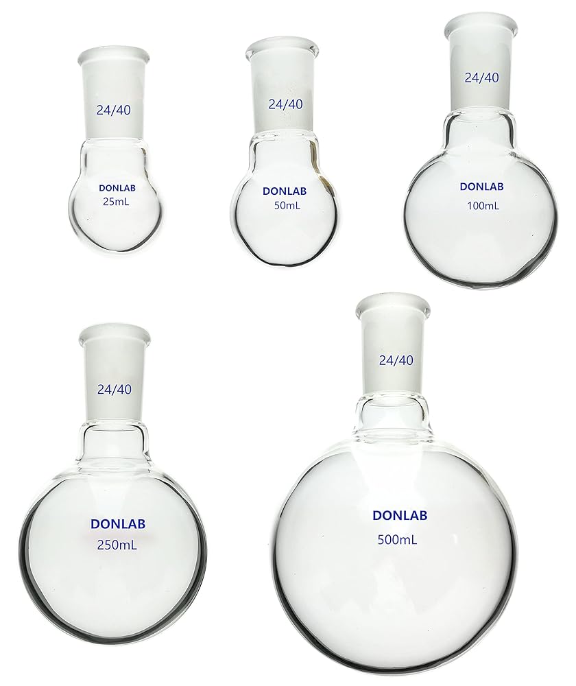 KIT-00305 Single Neck Round Bottom Boiling Flask Set (25, 50, 100, 250, 500mL one each)