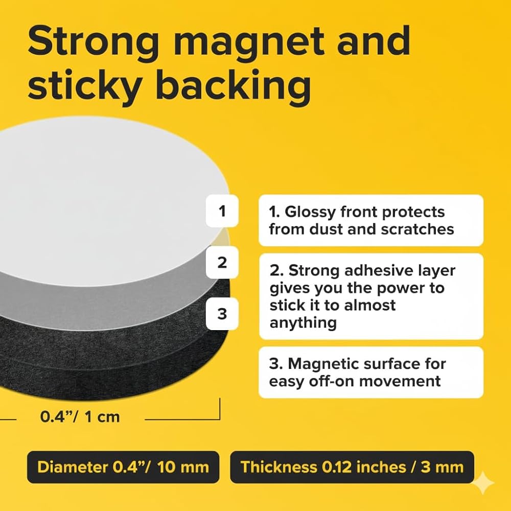 • STRONG ADHESIVE BACKING: These magnetic dots are sticky magnets that are prepared to stay. Our magnets with adhesive backing are a great way to hang photos or to-do lists on your refrigerator.