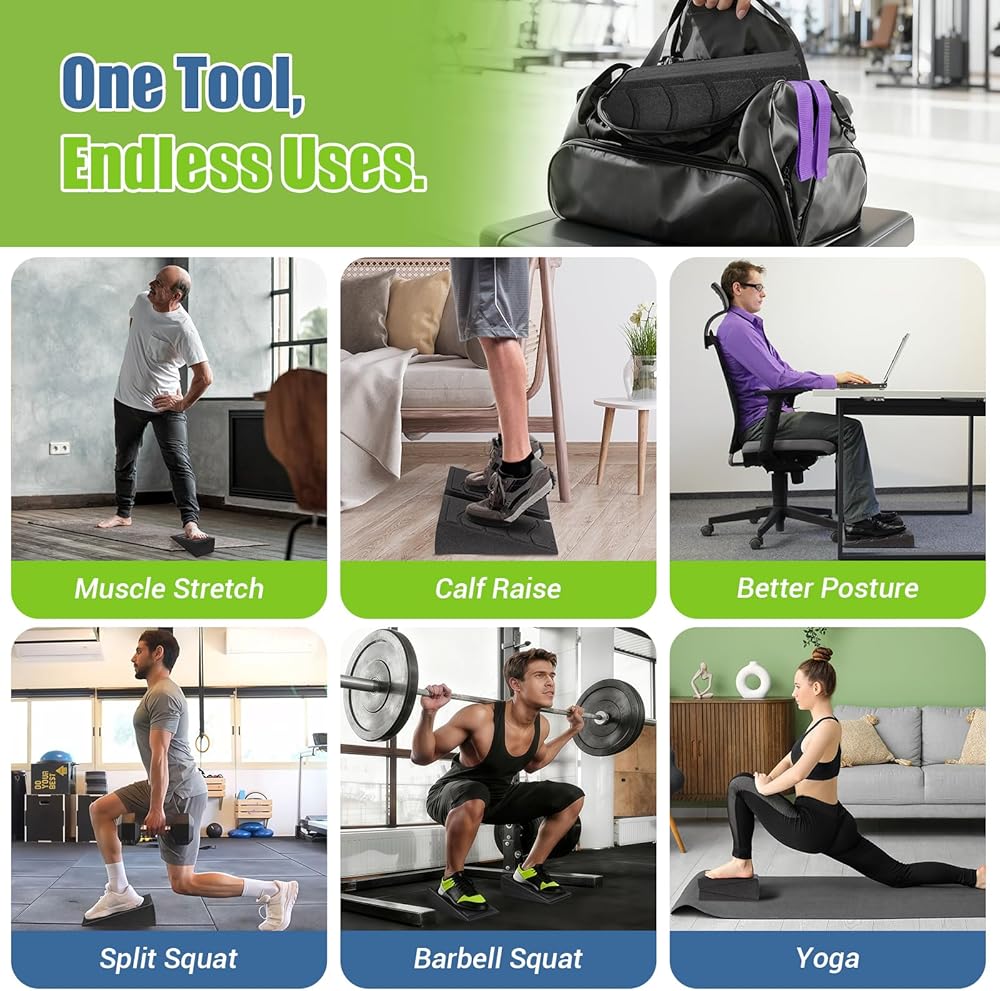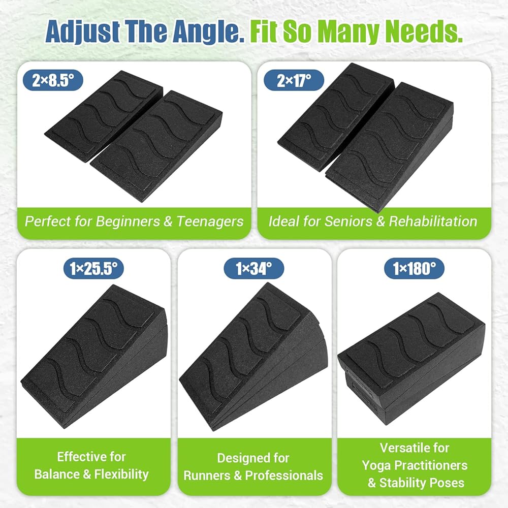 لوح مائل الكل في واحد للقرفصاء والتمدد والثبات: قم بتزيين حياتك، وزيادة تمرينك إلى أقصى حد. قم بتكوين 5 زوايا مميزة على الفور (8.5 درجة، 17 درجة، 25.5 درجة، 34 درجة، 180 درجة) لتحويل تدريبك: ارفع الكعب للحصول على شكل قرفصاء وعمق مثاليين، أو ارفع أصابع القدم لتمارين تمدد الساق والعرقوب، أو أنشئ لوحة تمرين مليئة بالتحديات. قم بالتبديل بسلاسة بين الأدوار مثل إسفين القرفصاء، أو نقالة الساق، أو دعامة اليوغا، أو لوح رفع الأثقال، أو منحدر العلاج الطبيعي.