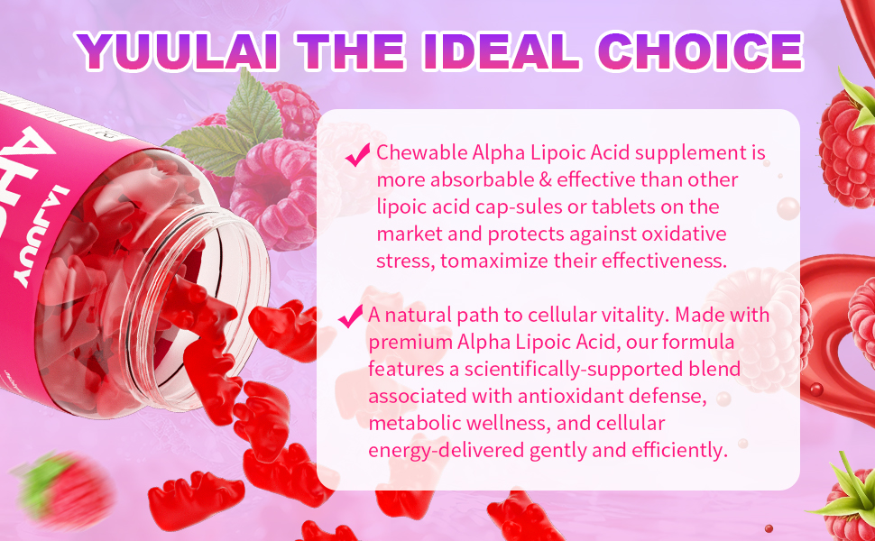 مريحة وسهلة المضغ: تأتي علكة مكملات حمض الفالفا ليبويك بنكهة التوت اللذيذة، مما يجعلها ممتعة وسهلة بالنسبة لك لدمج الفيتامينات والمعادن الأساسية في روتينك اليومي. المزيج المثالي من طعم التوت والملمس المطاطي يحول روتين الرعاية الصحية اليومي الخاص بك إلى تجربة ممتعة