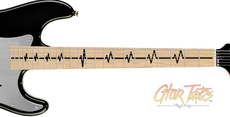 This is for Guitars without Fret dots. This will NOT cover dots. Crafted in America from GtarTat2s Made for Musicians, by Musicians! FITS BASS UP TO 24 FRETS.Quickly turn your boring old guitar into an exotic, custom work of art. Make over your old $100 guitar to look like a $1,000 custom guitar. BONUS BUY SPECIAL! Two for the price of one. Share with a friend, keep one for later use, if you got 2 guitars...give them both the CUSTOM Look. GtarTat2s won't damage your guitar, effect your guitar sound, or hinder your guitar playing. Made of super thin material that won't get caught in your strings. Takes minutes to apply. If you can use scissors, You can install GtarTat2s. GtarTat2s stay on until you decide to pull them off.