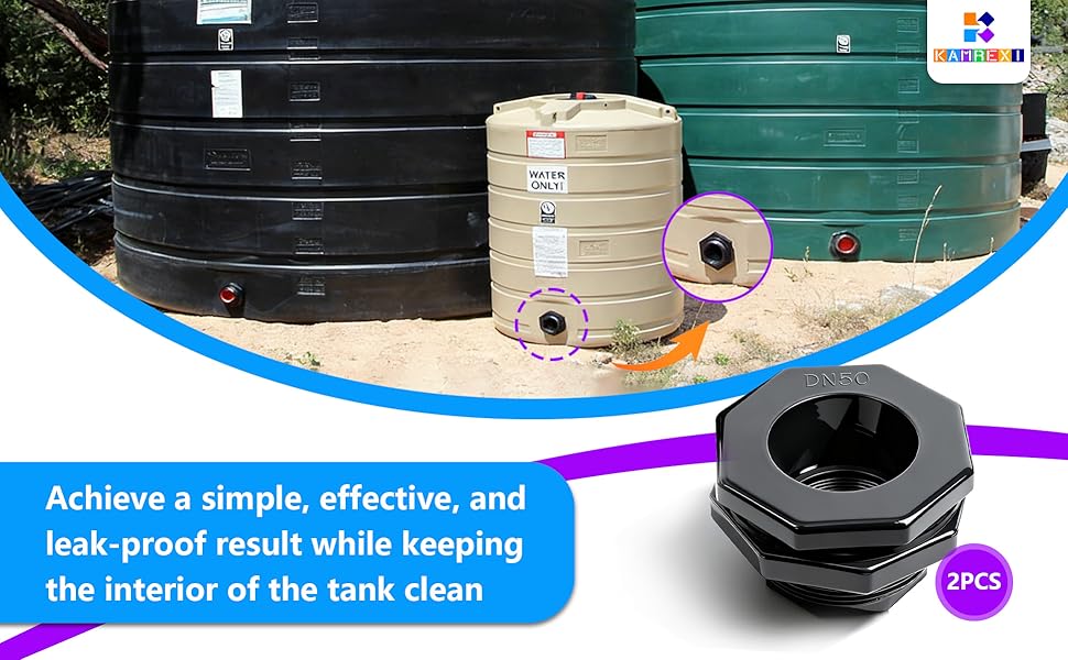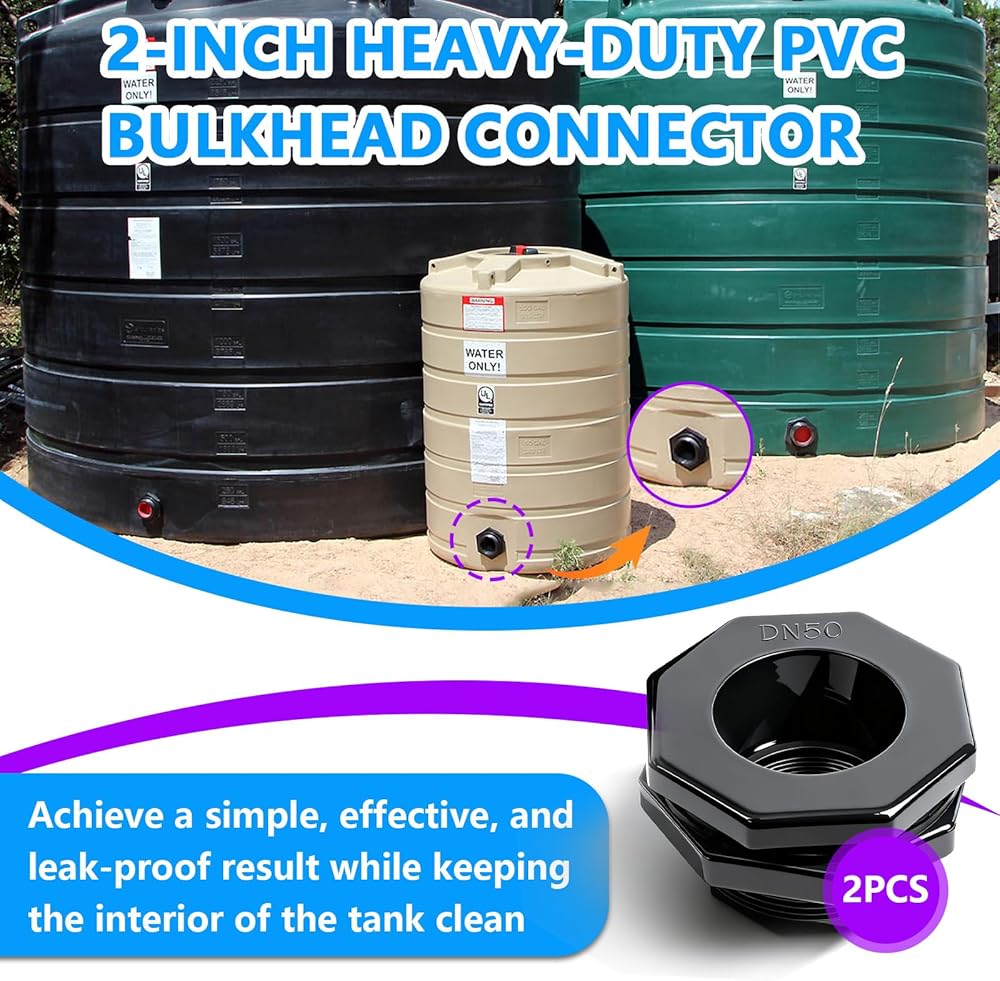 قطعتان من تركيبات الحاجز البلاستيكية مقاس 5 سم (خيوط NPT)، مجموعة موصلات خزان المياه للسباكة شديدة التحمل مع أختام معززة لبراميل المطر وخزانات المياه وأحواض السمك والأحواض وحمامات السباحة