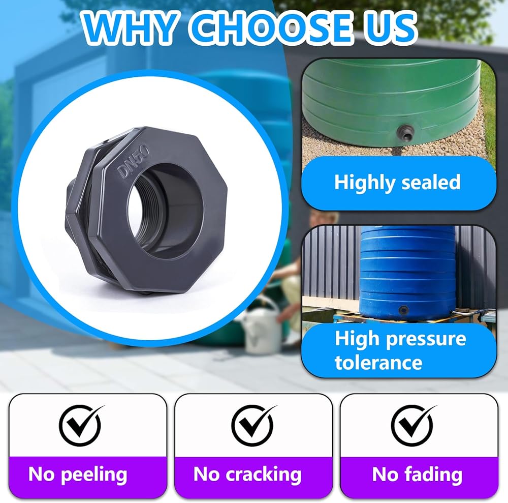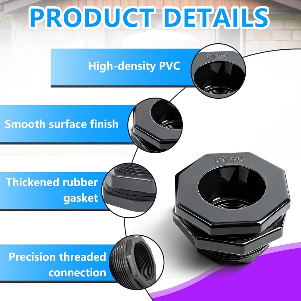 مواد عالية الجودة: يتميز موصل الحاجز مقاس 2 بوصة بمتانة مادة PVC المتينة. هيكلها المتميز يقاوم البهتان أو التقشير أو التشقق، ويتفوق على إكسسوارات حوض السمك والخزان القياسية كخيار يمكن الاعتماد عليه