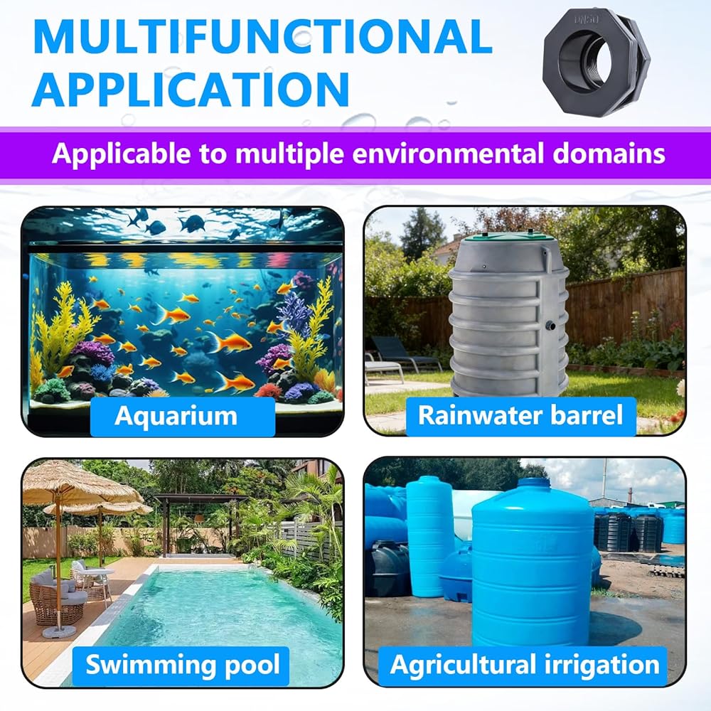 تطبيقات متعددة الاستخدامات: تم تصميم تركيب الحاجز مقاس 2 بوصة للحصول على أداء موثوق ومقاوم للتسرب ومتانة في بيئات مختلفة، وهو بمثابة خيار عملي لأنظمة السباكة الزراعية والصناعية. يسهل تركيبها القوي التركيب المباشر في براميل المطر أو خزانات المياه أو خطوط الأنابيب، مما يساعد على تقليل الصيانة بمرور الوقت