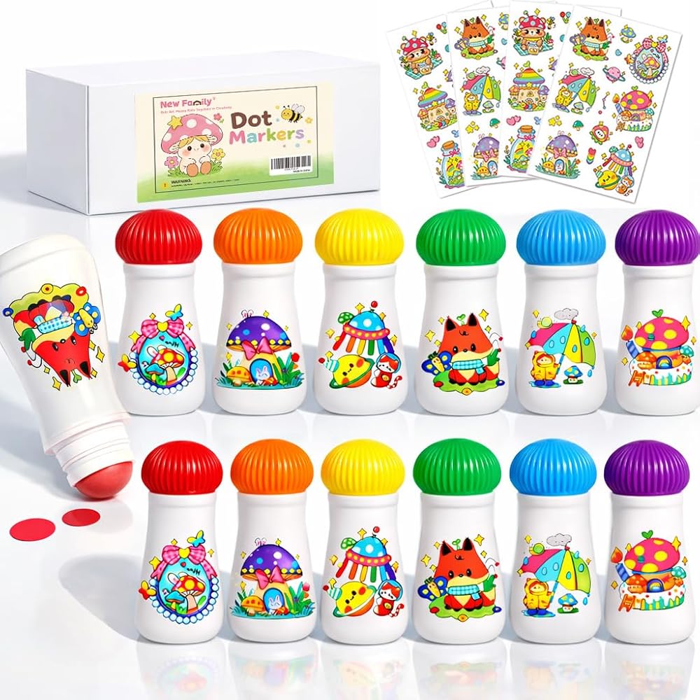 🍄 تصميم فطر رائع، مصنوع للأيدي الصغيرة: مجموعة أقلام التحديد المنقطة هذه المكونة من 6 عبوات للأطفال الصغار تأتي بتصميم لطيف على شكل فطر - بحجم مثالي للأيدي الصغيرة. سهلة الإمساك، ومضادة للالتفاف، وتجعل اللعب الإبداعي أكثر متعة. بالإضافة إلى ذلك، فهي تدعم بشكل طبيعي تنمية المهارات الحركية الدقيقة أثناء وقت الفن لدى الأطفال.