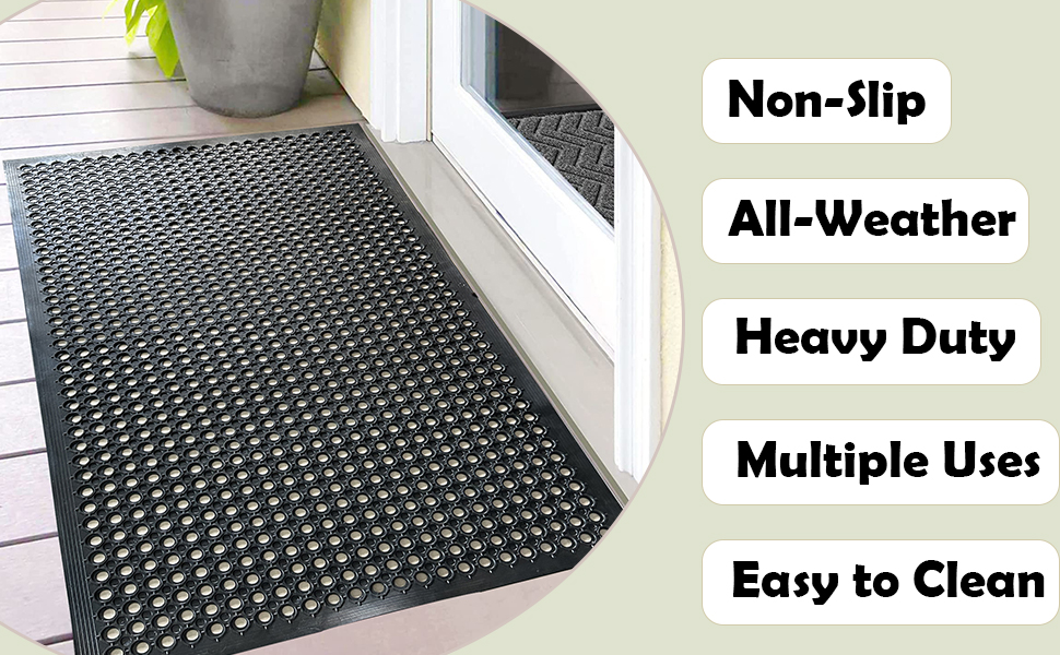 Uniboho في الهواء الطلق الحصير المطاط المضادة للانزلاق مطعم المطبخ التجاري حصيرة المطاط الصرف حصيرة 60 × 35 الثقيلة باب حصيرة لحديقة المرآب داخلي خارج Industral بركة مدخل بار منطقة رطبة