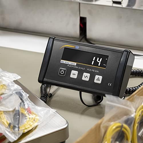 PCE Instruments PCE-PB 60N Max capacity: 60 kg (132 lbs) Readability: 20 g (0.7 oz)Weighing plate dimensions: 300 x 300 x 45 mm (11 x 11 x 1.7 inches)Digit height: 20 mm (0.78 inches)Bidirectional USB interface Weighing Platform Scale (60 kg Max Capacity) Checkweighing Scale PCE-PB 60N up to 60 kg, Bidi rectional USB interface, PEAK hold function, Counting function, Mains and battery operation including USB interface cableThe checkweighing scale of the PCE-PB N series is a versatile platform scale. The functions of the checkweighing scale are very extensive, but one function is particularly interesting for shipping. It is the bidirectional USB interface of the checkweighing scales that enables control by the PC. However, the checkweighing scales of the PCE-PB N series can be used with the optional, inexpensive 'ProCell' software. This software simulates keyboard input, similar to a scanner. With the help of this software, the checkweighing scale can then transfer the weight value into active fields.Another advantage of this checkweighing scale is the wired display. The display is supplied with a stand, but it is also suitable for wall mounting. Other interesting functions of the checkweighing scales are the piece counting function, PEAK hold function, function for level control, measuring units such as kg / lb / N (Newton) / g, adjustable background lighting, adjustable automatic switch-off and the option to operate the scales with power pack or batteries.