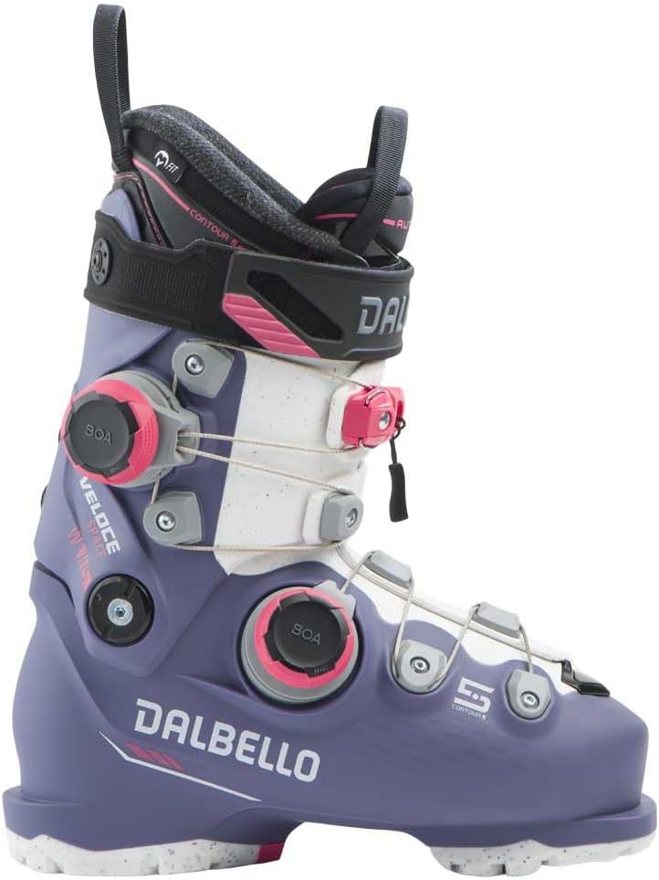 The 2026 Dalbello Veloce Space 105 W Dual BOA delivers performance-focused control in a women's-specific mid-volume fit, offering a responsive 105 flex and dual BOA closure for precision and all-day comfort. With a 101 mm Adaptive Fit last and lightweight build, it's built to handle the demands of strong skiers without sacrificing fit or feel. Why we like it: Dalbello nailed the balance between snug, secure, and powerful, but still genuinely comfortable for long days on the hill. Bottom Line: The Dalbello Veloce Space Dual 105 Women's GW Ski Boots offer the perfect blend of performance, comfort, and easy adjustability with the Dual Boa system, making them an excellent choice for intermediate skiers who want to enjoy every run with minimal fuss. Who it's for: Advanced to expert female skiers who want a responsive boot that delivers all-day comfort and performance, especially those with medium to slightly higher volume feet. Highlights: The dual BOA system delivers micro-adjustable fit precision in both the cuff and lower shell, offering an even, fully-wrapped feel that dials in comfort and control with impressive subtlety. Thanks to the move away from buckles, the Veloce Space 105 W Dual is remarkably light for its category, delivering performance without the penalty of tired legs. The Total Autofit tongue molds seamlessly to the shape of your shin, while asymmetrical Ankle Sense padding keeps your heel locked in. A bi-injected shell supports smooth flex and easy entry/exit, and GripWalk soles provide confidence underfoot on icy walkways.